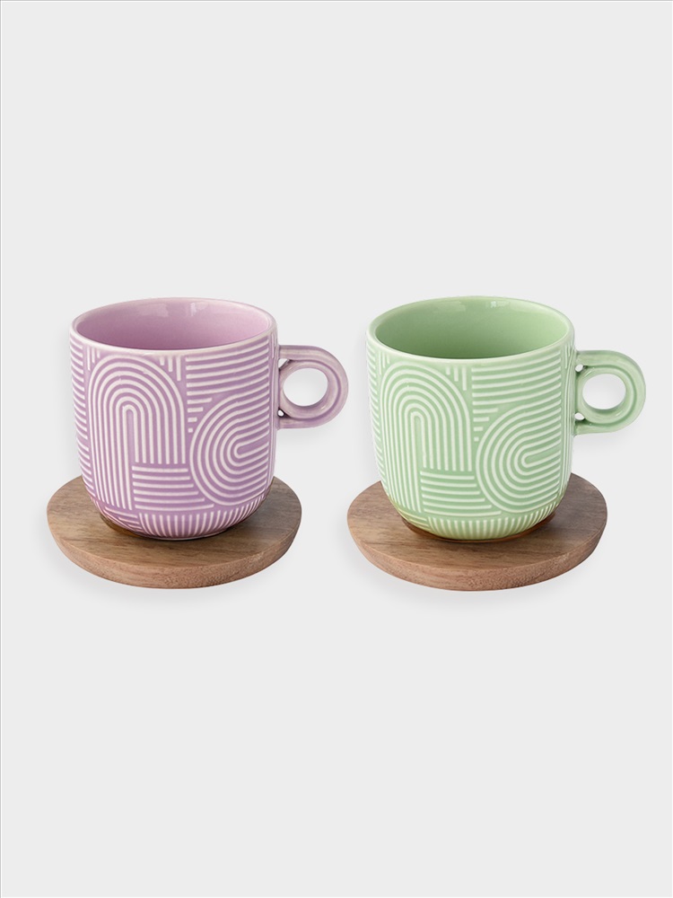 Бренд: EASY LIFE Чашка, 250 мл, 2 шт, на подставке, фарфор P/дерево, фиолетовый/светло-зеленый, Take a loop. Материал: фарфор Рorcelain, акация. Мыть тёплой водой с применением ЖМС. Можно использовать в СВЧ и мыть в посудомоечной машине (кроме крышки-подставки).
