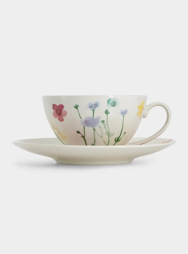 Чашка с блюдцем, 400 мл, Лесные цветы