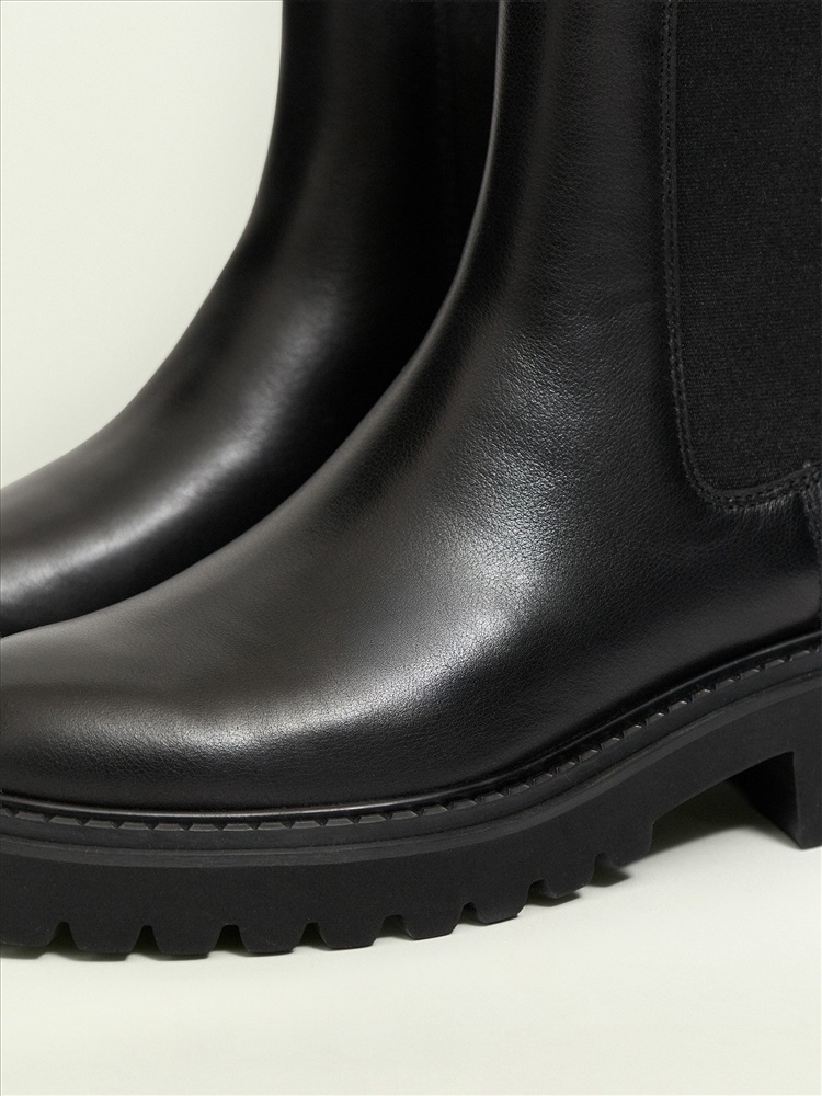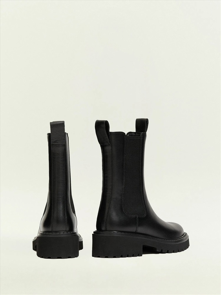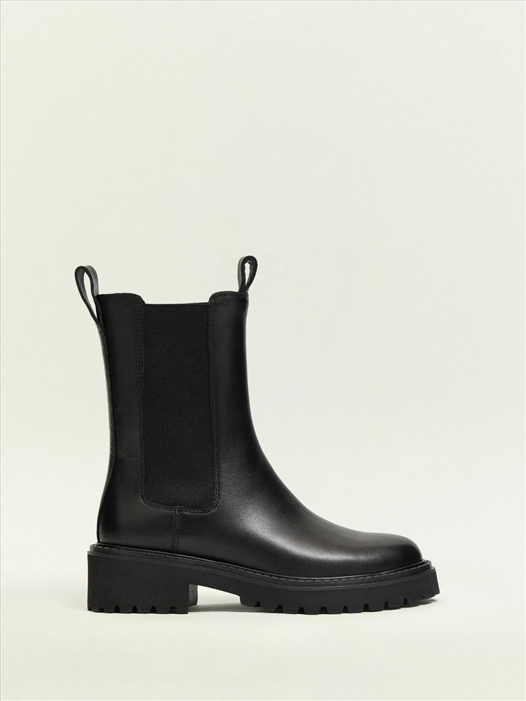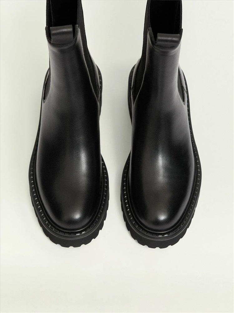 Модные ботинки-челси в чёрном цвете. Выполнены из натуральной кожи. Отлично дополнят образы с денимом, кожей и экокожей, а также другие повседневные аутфиты.
