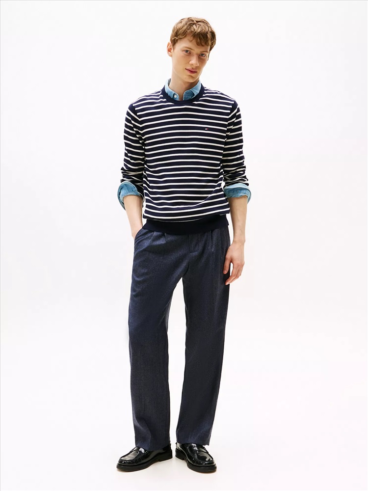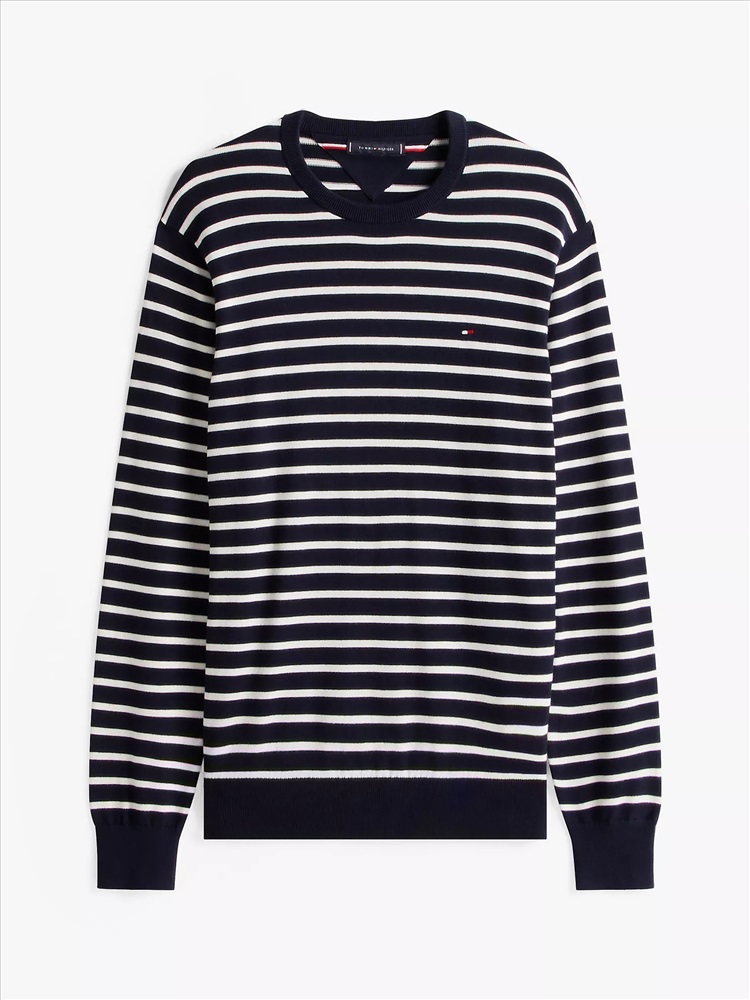Tommy Hilfiger men's sweater. Made from fine-gauge combed cotton that holds its shape and resists pilling, this classic sweater will live in your wardrobe for years.