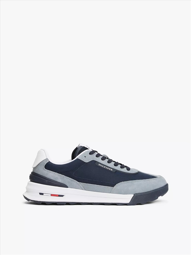 Tommy Hilfiger men's sneaker. The vintage-inspired runner style of these suede low-top sneakers feels modern and elevated, thanks to the contrasting textures and branded detailing.