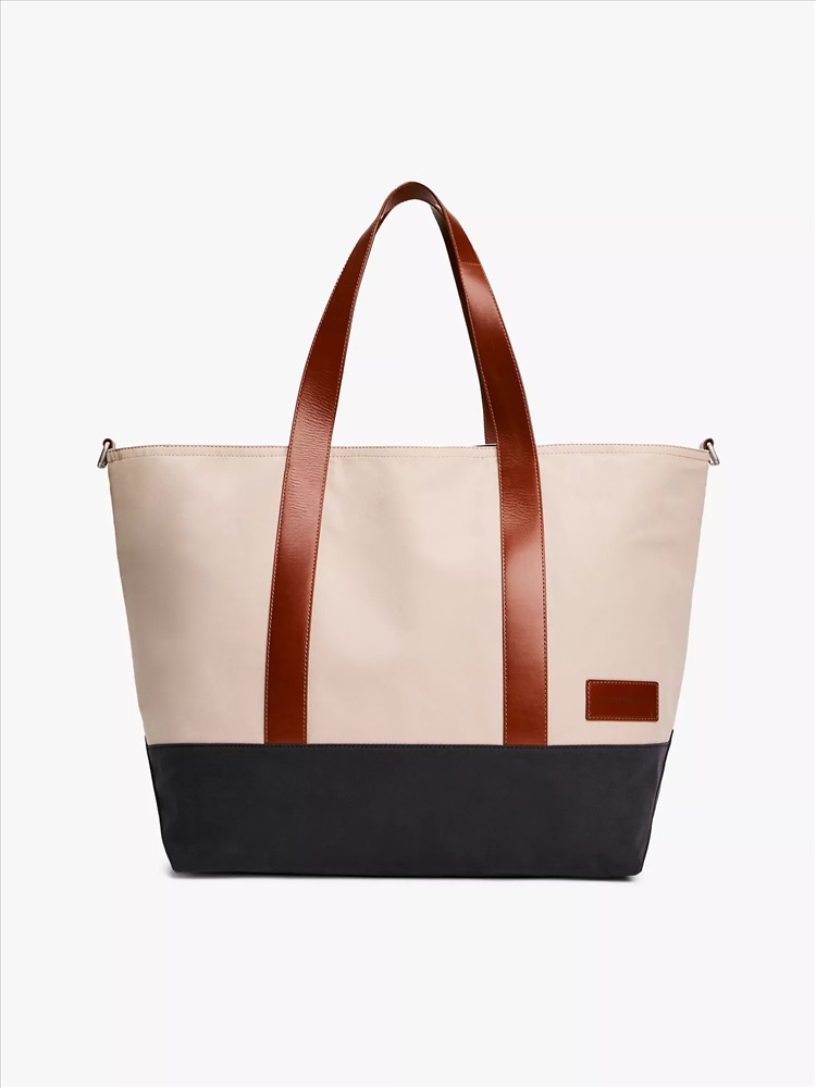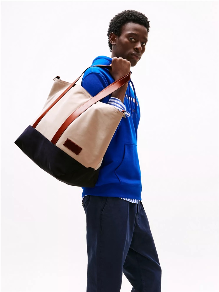 Tommy Hilfiger men's bag. This colorblock tote is perfect for everyday use thanks to its sleek design, spacious interior, and removable shoulder strap.
