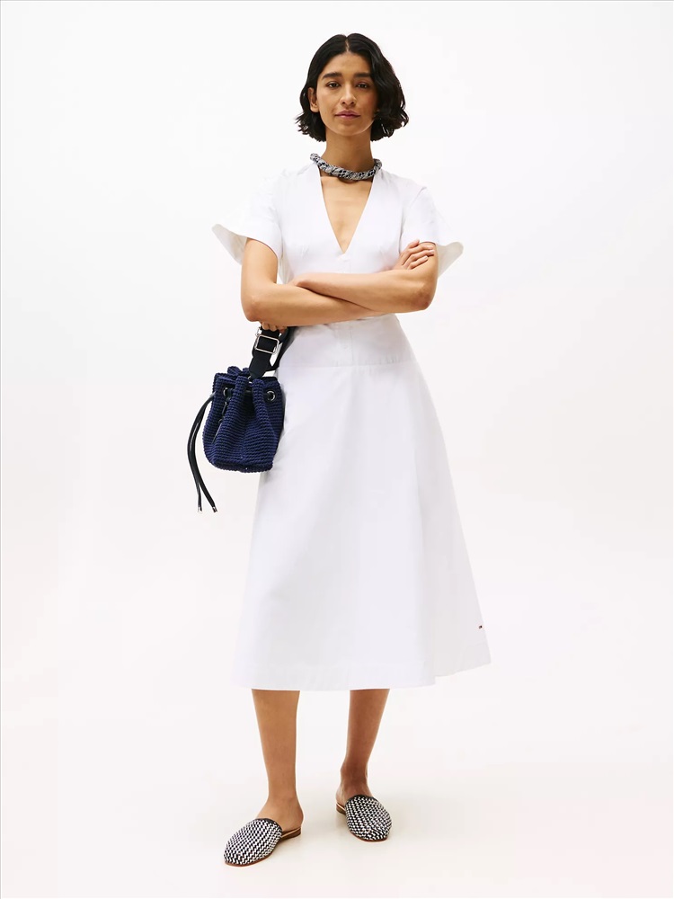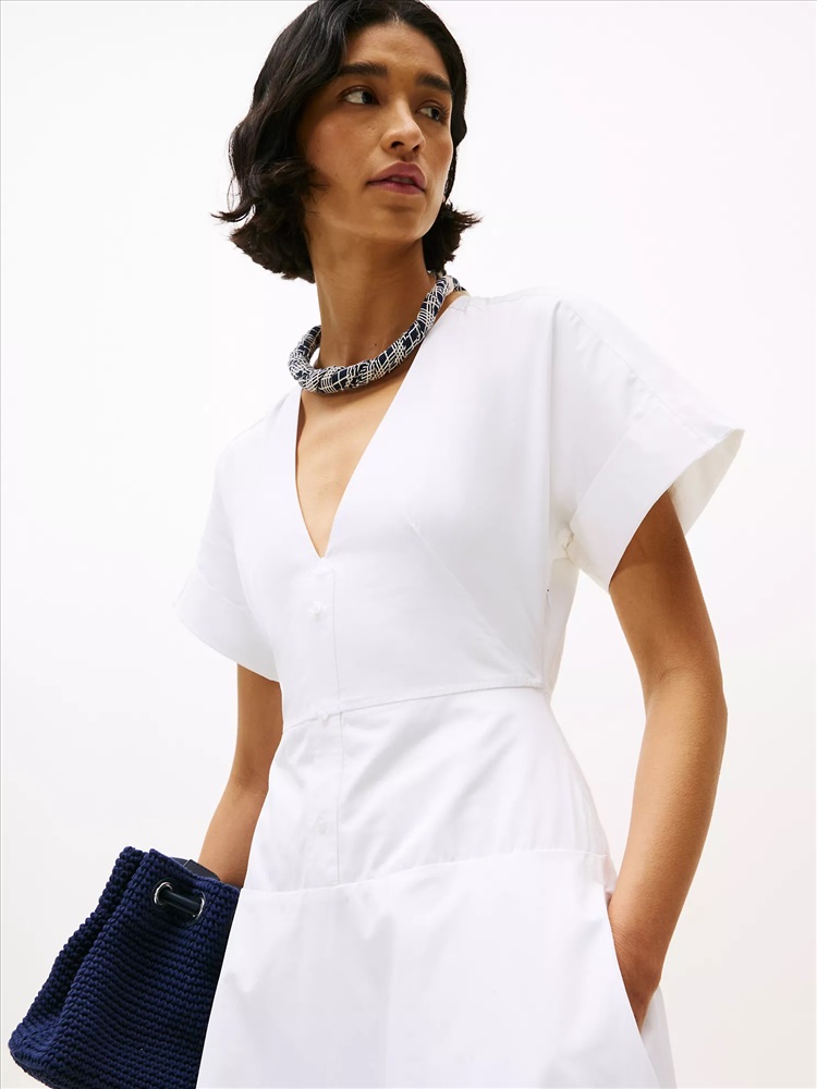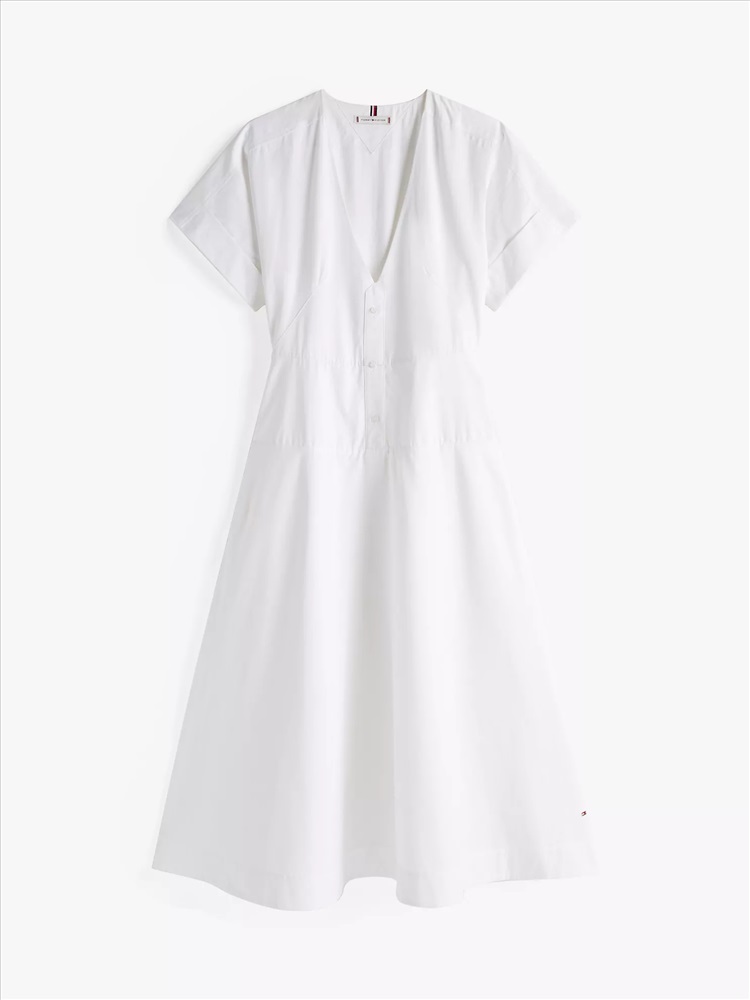 Tommy Hilfiger women's dress. Made from soft cotton poplin, our shirtdress is designed with a button placket and fitted waist. Finished with short sleeves in a midi length, it nails the casual, warm-weather dress code. A limited-edition style from our Spring 2025 runway collection.