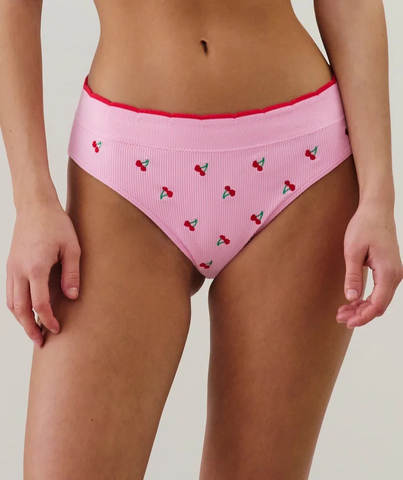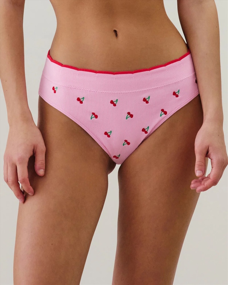 Enamórate de este culotte BRODCHERRIZ ultracómodo y sin costuras. Con su efecto acanalado, ¡te encantará! Nos encanta su bordado de cerezas, perfecto para celebrar San Valentín.