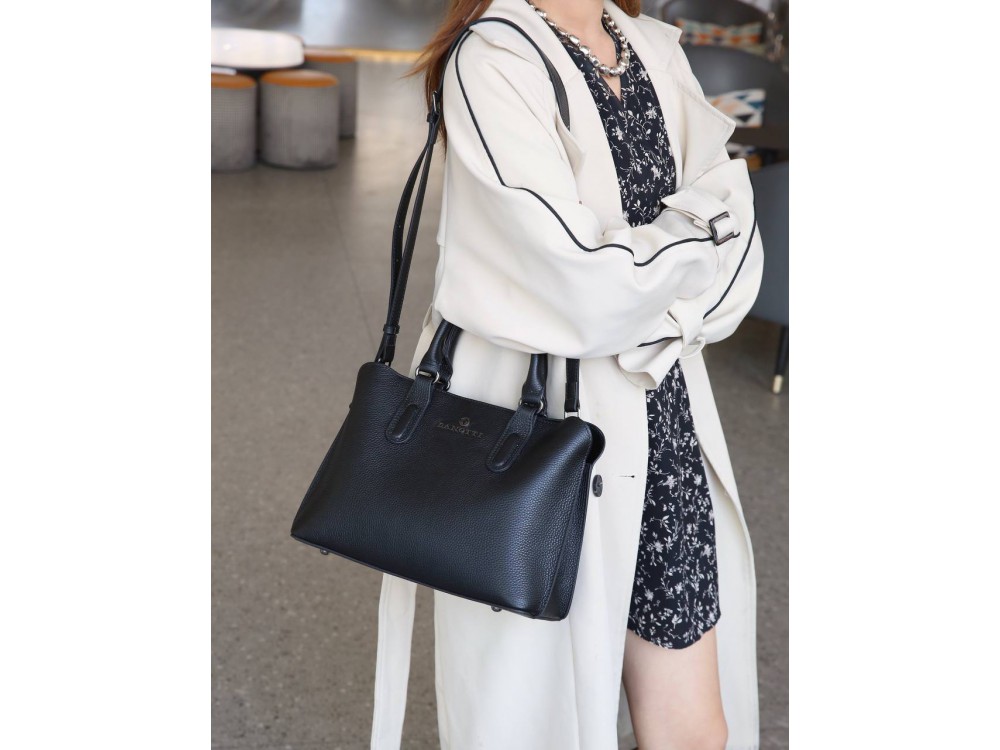 Описание: две короткие ручки. Текстильный ремень на плечо + длинный кожаный ремень с возможностью регулировки. Три основаных отделения. Одно застегивается на молнию + внутри карман для телефона, дополнительный карман для аксессуаров на молнии. Два других отделения застегиваются на магнитную клепку.