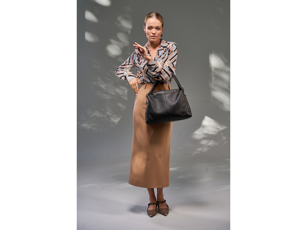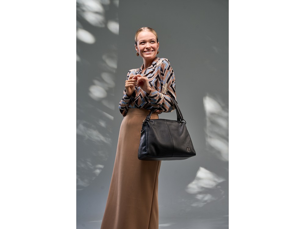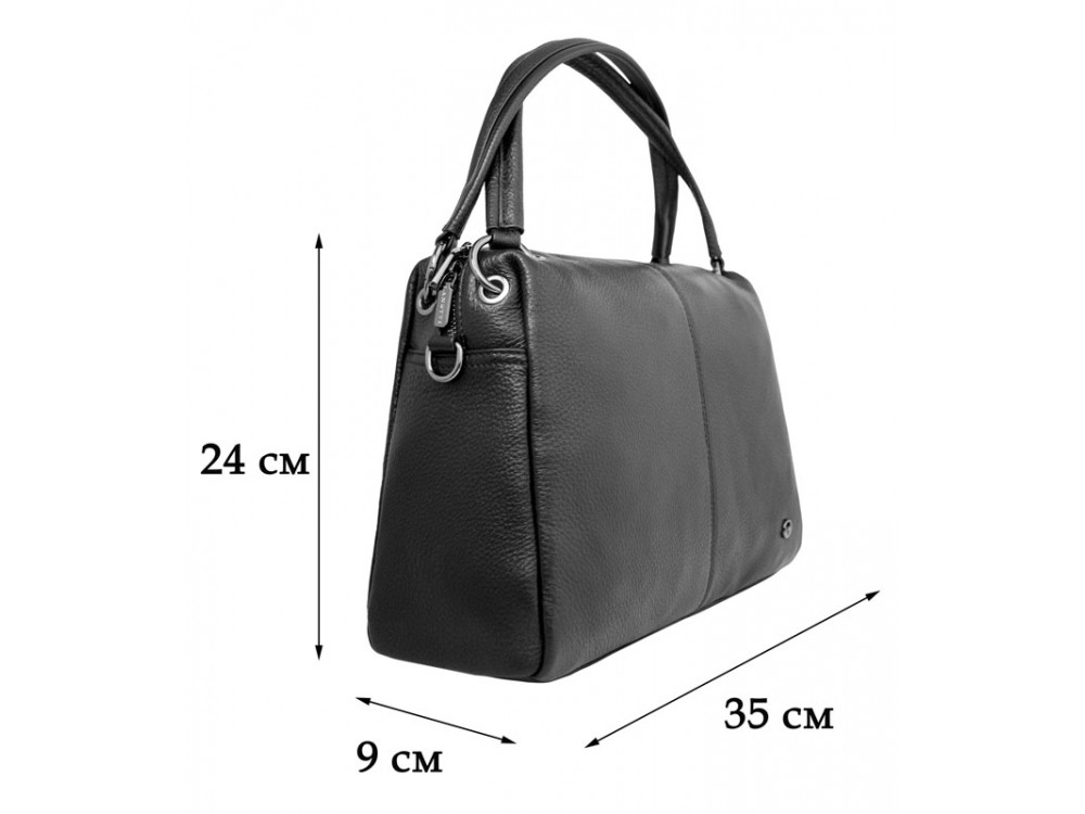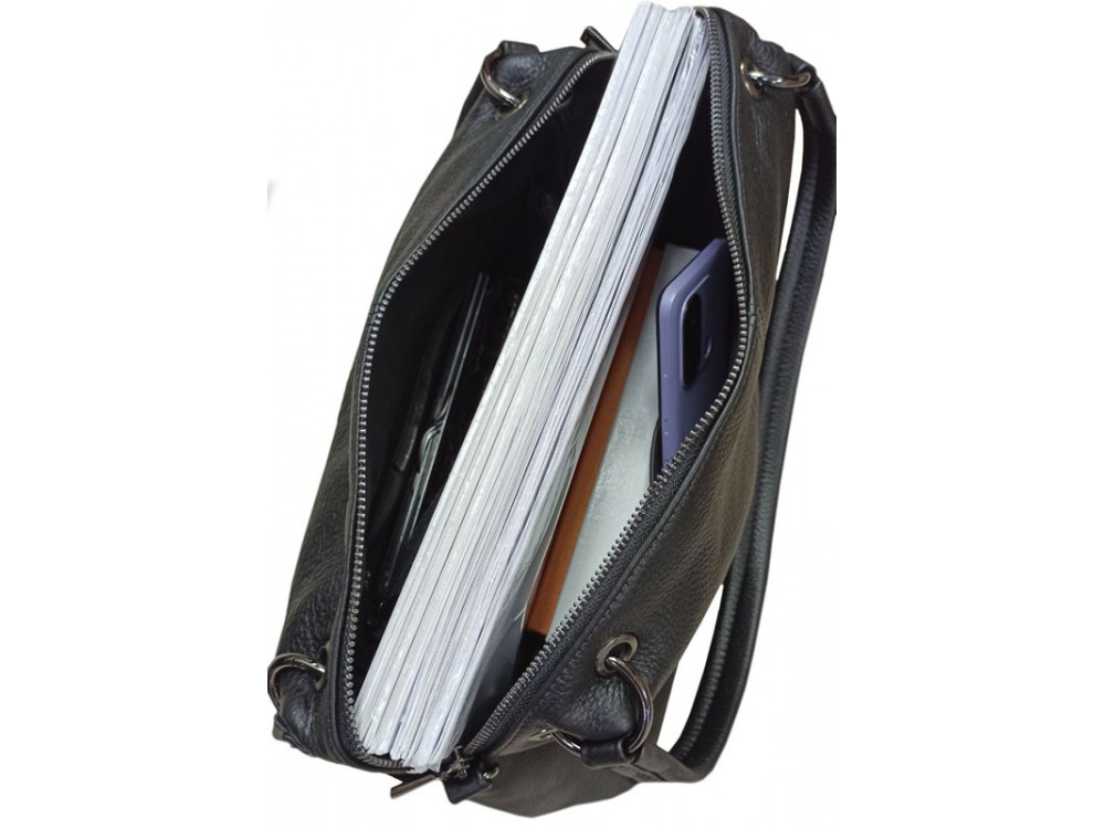 Две короткие ручки и длинный кожаный ременьс возможностью регулировки. Одно основное отделение застегивается на молнию. Внутри: четыри вместительных кармана для аксессуаров, два из которых застегиваются на молнию. Снаружи: сзади карман для мелочей на молнии.