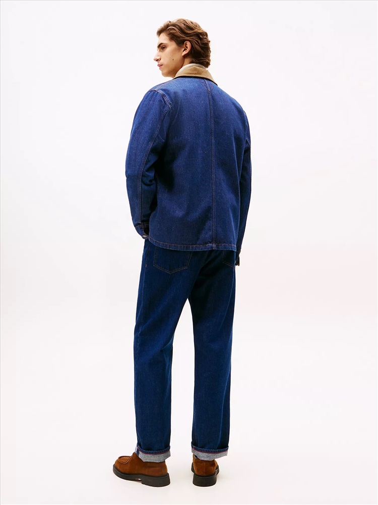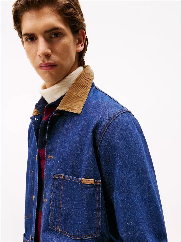 Tommy Hilfiger men's jacket. Our rugged chore jacket features a corduroy collar and is made from rigid denim in a vintage-inspired utility design. Part of our Tommy Jeans collection.