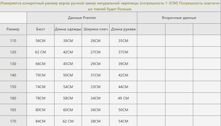 Размер: 110, 120, 130, 140, 150, 160, 165, 170
