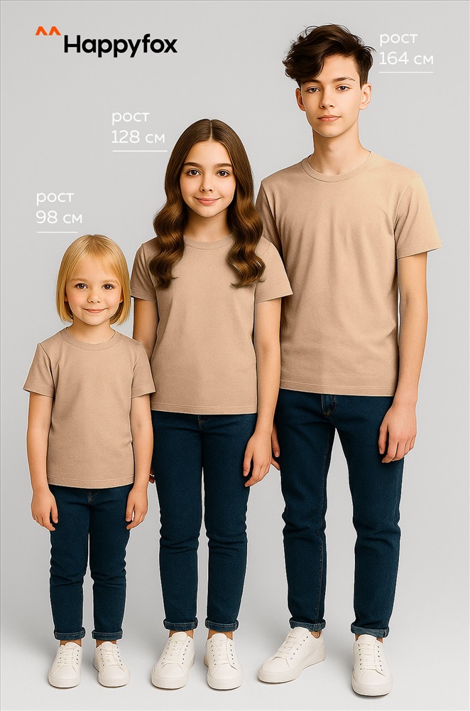 Футболка песочного цвета идеальна для повседневных образов. Подростковая футболка классического прямого кроя легко сочетается с другими предметами школьного гардероба, что позволяет создавать новые стильные образы. Трикотажная футболка с коротким рукавом является стильным решением для школы. Бежевая футболка подойдет для образов на лето.