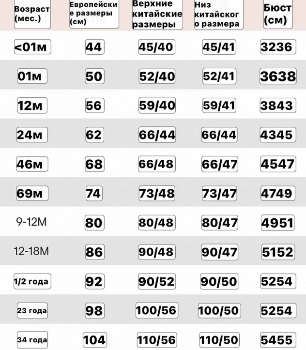 Размер: 66/47 4-6М, 73/47 6-9М, 80/47 9-12М, 90/47 12-18М, 90/50 11/2-2Y, 100/50 2-3Y, 110/50 3-4Y