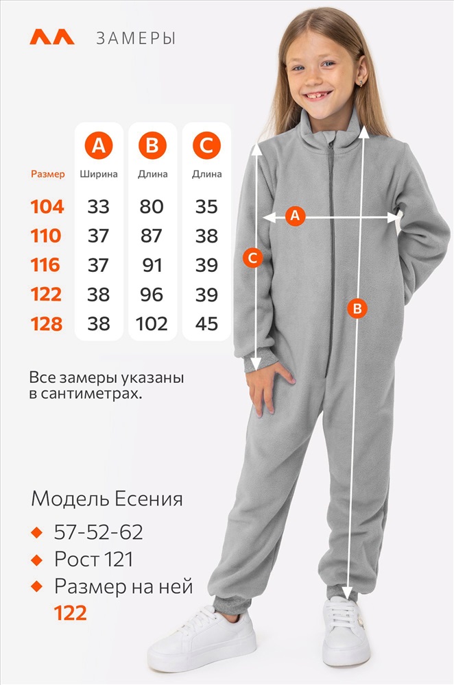 Размер 122: длина:104 см; ширина:39 см; длина рукава внешняя:47 см; длина рукава внутренняя:35 см.