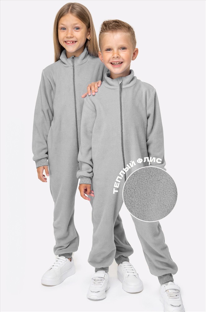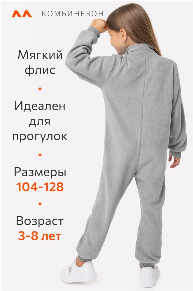 — однотонный серый комбинезон выдерживает многочисленные стирки, не теряя форму и цвет;