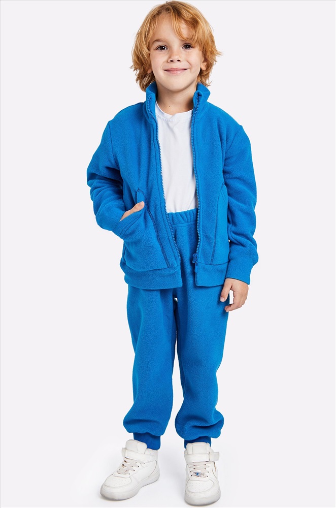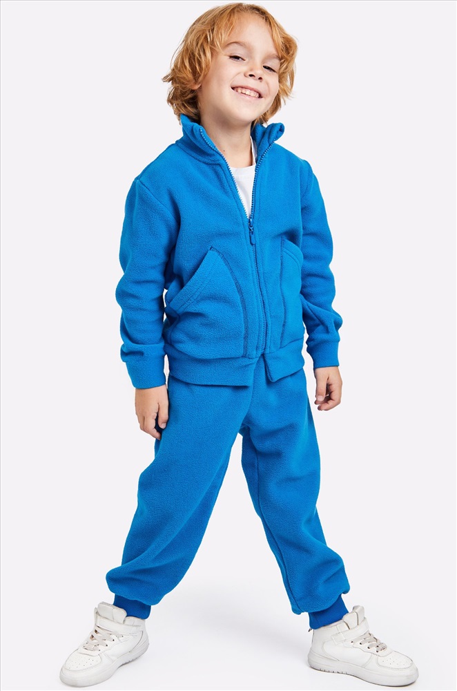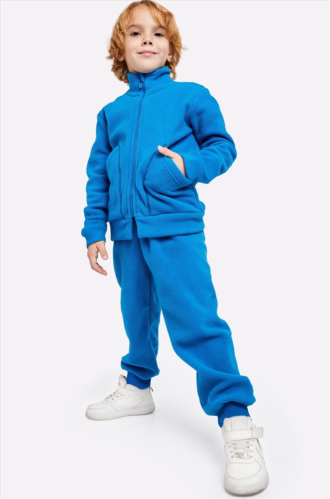 Преимущества: – флисовая ткань надёжно сохраняет тепло; – однотонная базовая модель легко сочетается с любым образом; – спортивный стиль подходит для активных игр; – толстовка с замком (зипка) и карманами добавляет удобства; – штаны на манжетах и с резинкой в поясе удобно сидят по талии. Прямой крой толстовки с воротником-стойкой и свободные брюки делают комплект практичным и уютным. Утепленный спортивный костюм незаменим для детей на осень, зиму и весну — он остаётся комфортным в любой ситуации, его можно носить как поддёву. Размерный ряд позволяет подобрать костюм на флисе для детей 4-8 лет.