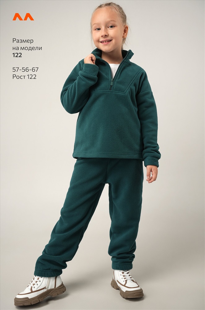 Зелёный детский костюм для мальчиков и девочек создан, чтобы зима проходила тепло и комфортно. Флисовый костюм выполнен из плотной мягкой ткани, которая бережно сохраняет тепло и приятно ощущается на теле.
