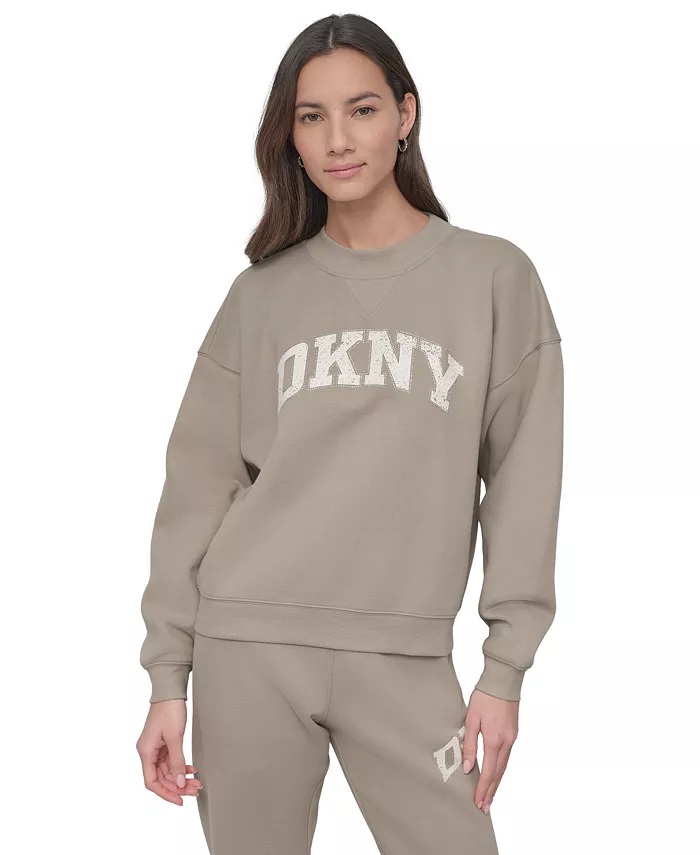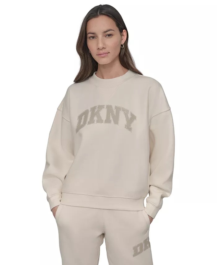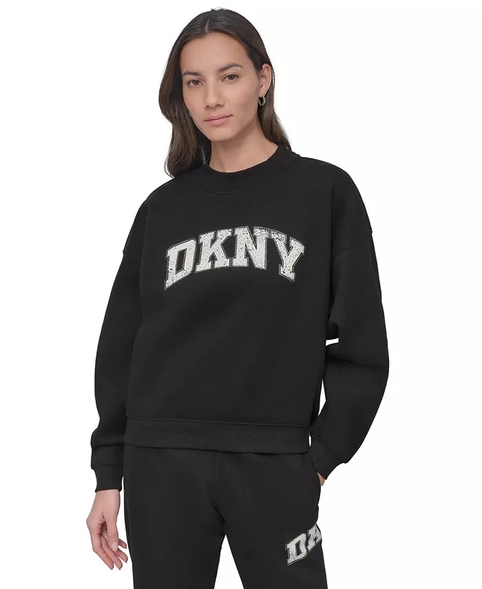 DKNY Sport Women's Rhinestone Logo Crewneck Top