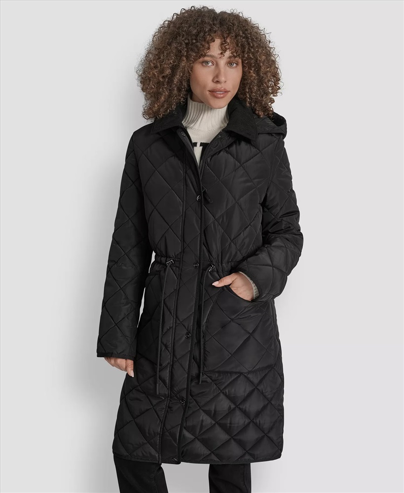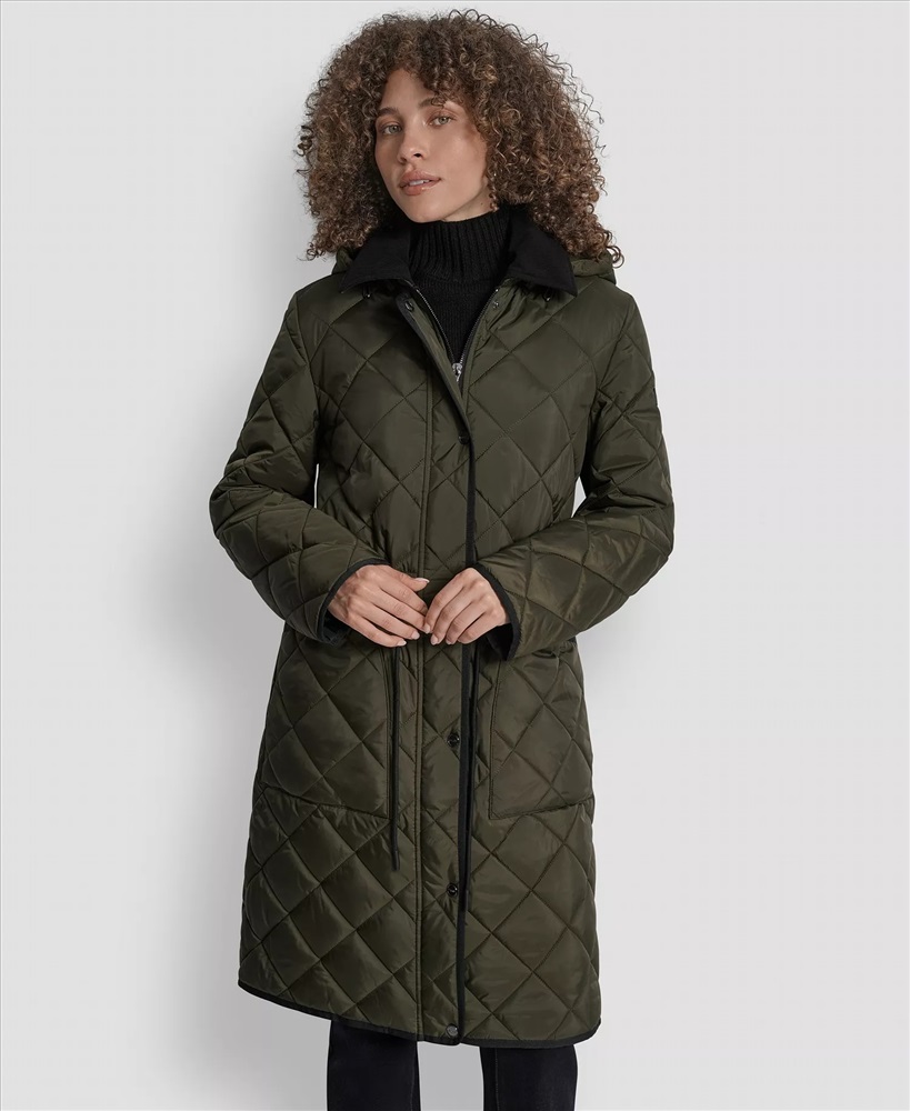 DKNY Women's Corduroy-Collar Quilted Anorak Coat