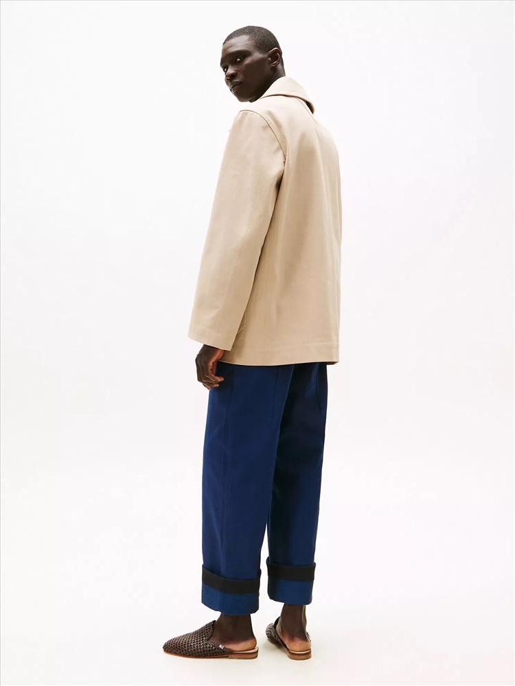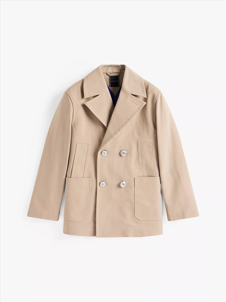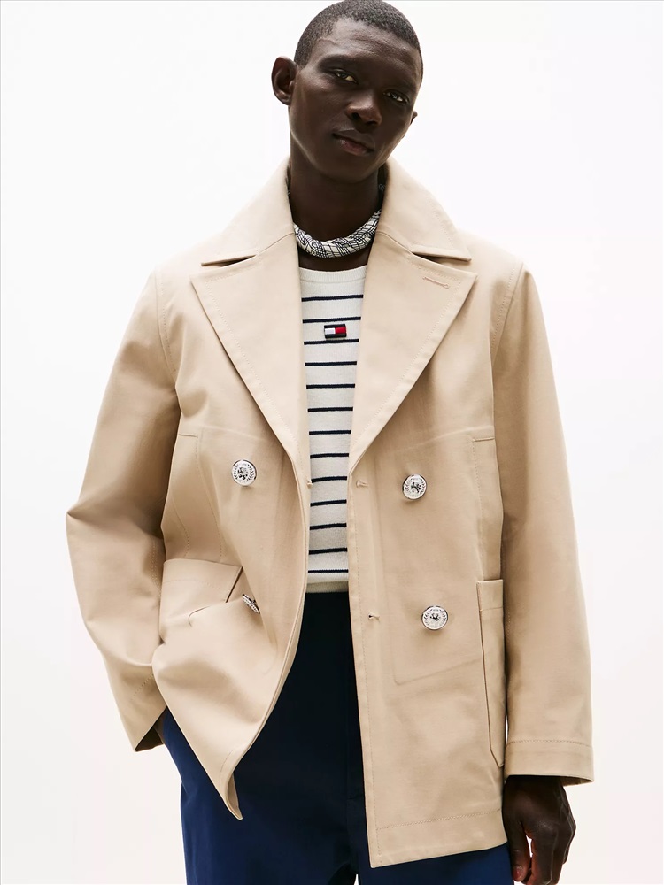 Tommy Hilfiger men's coat. Our timeless double-breasted peacoat features oversized lapels and handy welt and patch pockets. Made from cotton, it's the ideal transitional-weather layer. A limited-edition style from our Spring 2025 runway collection.