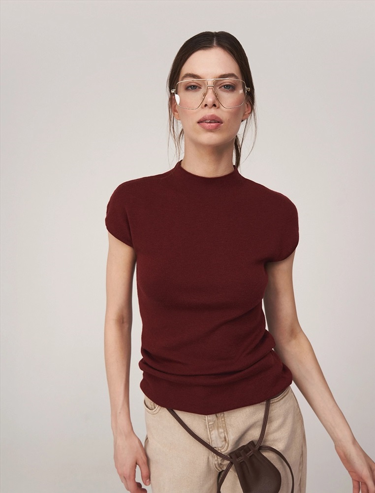 Видео: https-//hassfashion.ru/upload/iblock/546/3d4dsx0whlhgvvd4rsa2qkivkk0jdomf.mp4 осень-зима 50% хлопок,35%акрил,10% кашемир, 5%шелк. Вязаный джемпер регулярного силуэта с короткими рукавами и воротником. Выполнен из хлопка и акрила с добавлением кашемира и шелка, обеспечивающих тепло, мягкость и комфорт. Представлен в черном и бордовом цвете.