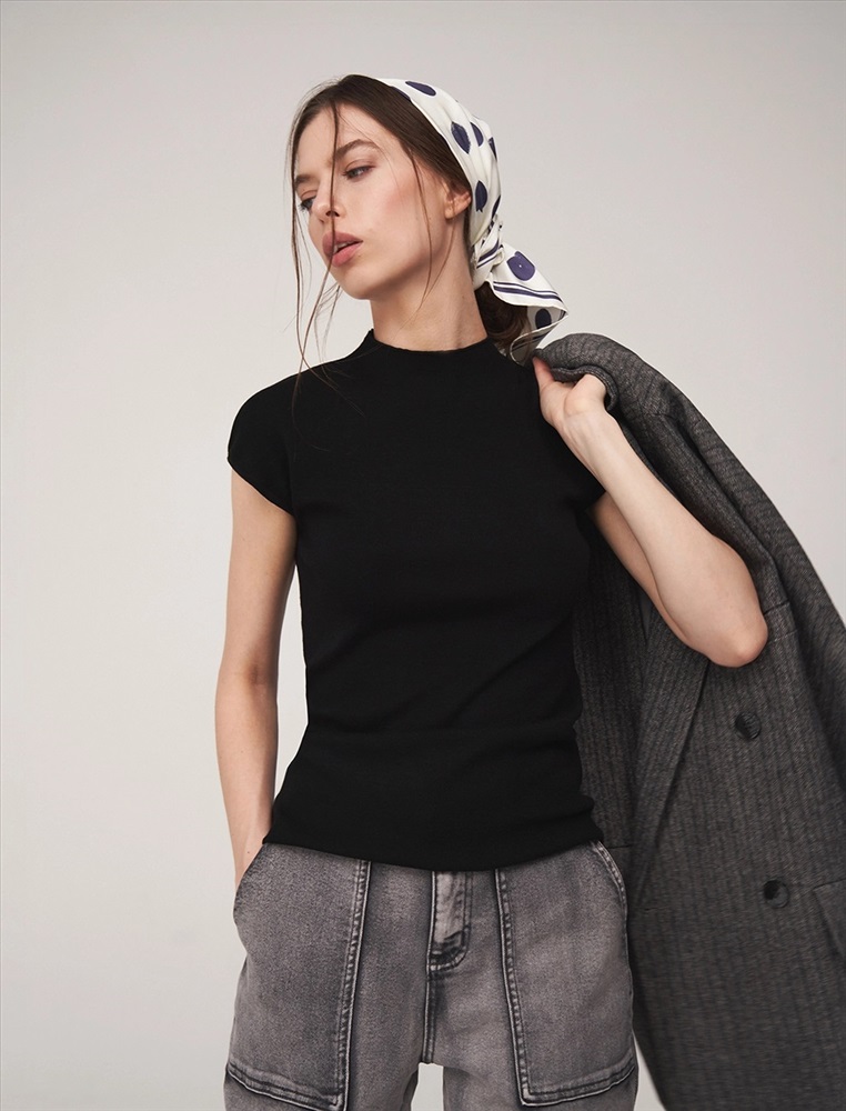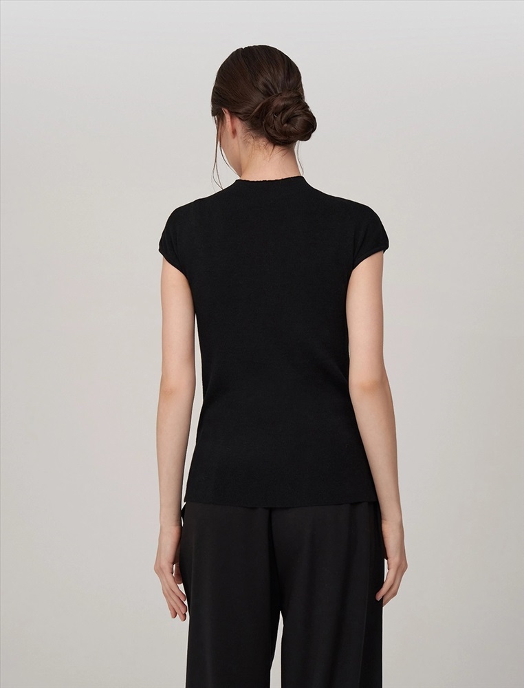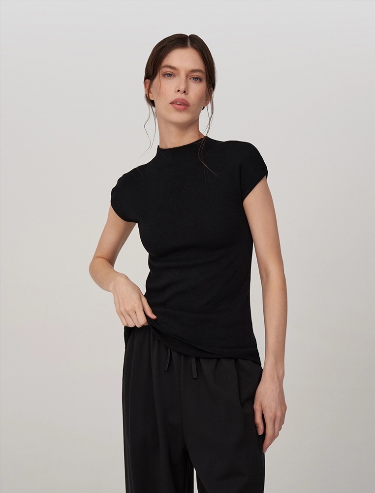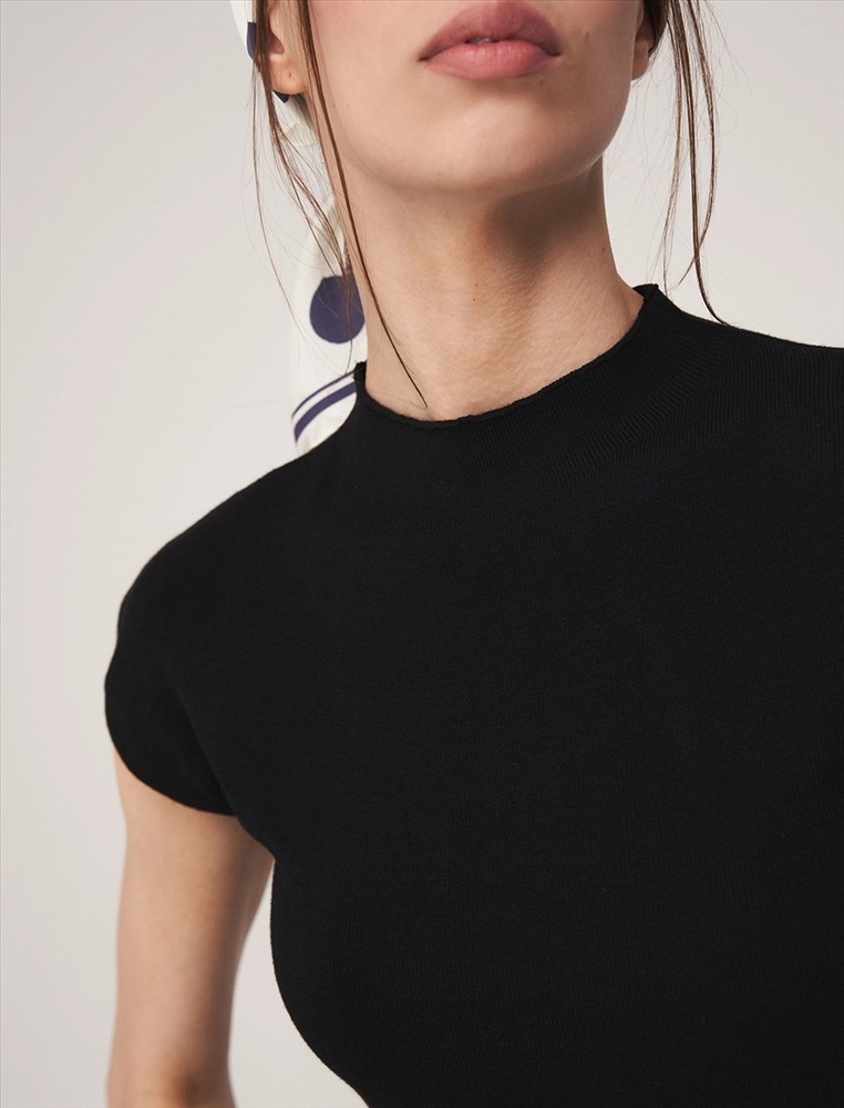 Вязаный джемпер регулярного силуэта с короткими рукавами и воротником. Выполнен из хлопка и акрила с добавлением кашемира и шелка, обеспечивающих тепло, мягкость и комфорт. Представлен в черном и бордовом цвете.