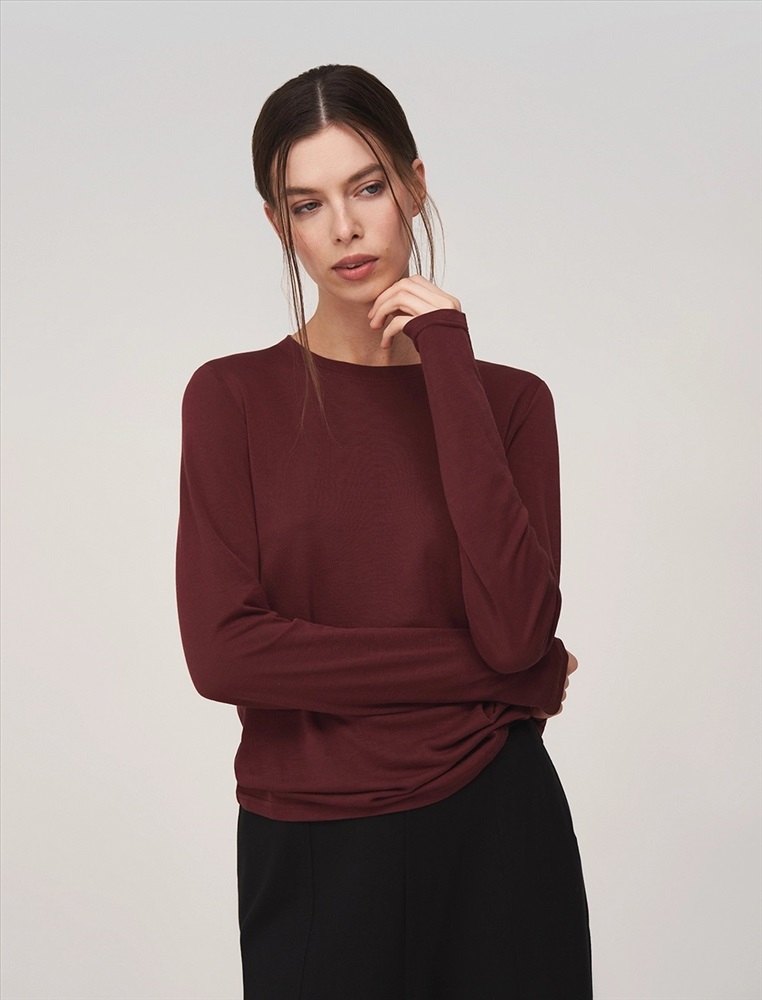Базовый лонгслив прямого силуэта с регулярной горловиной. Выполнен из 100% тенсела. Супертонкий лонгслив можно носить как самостоятельно, так и под рубашкой или жилеткой.