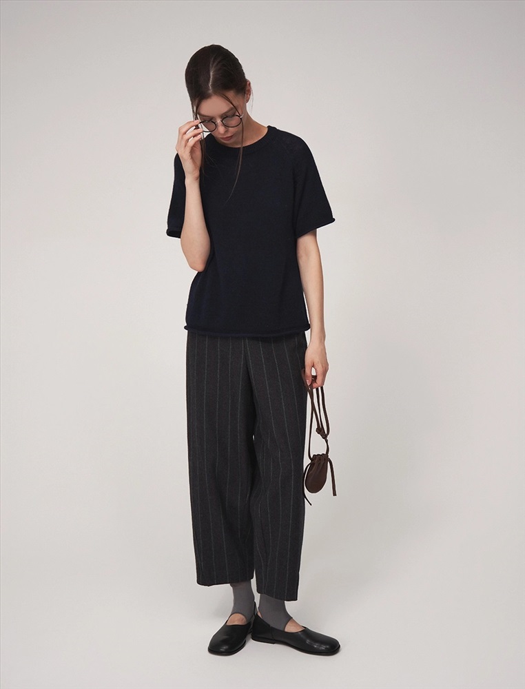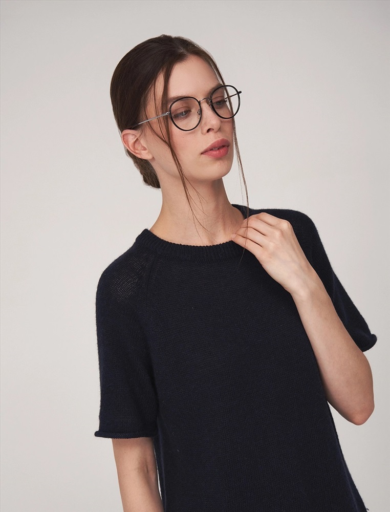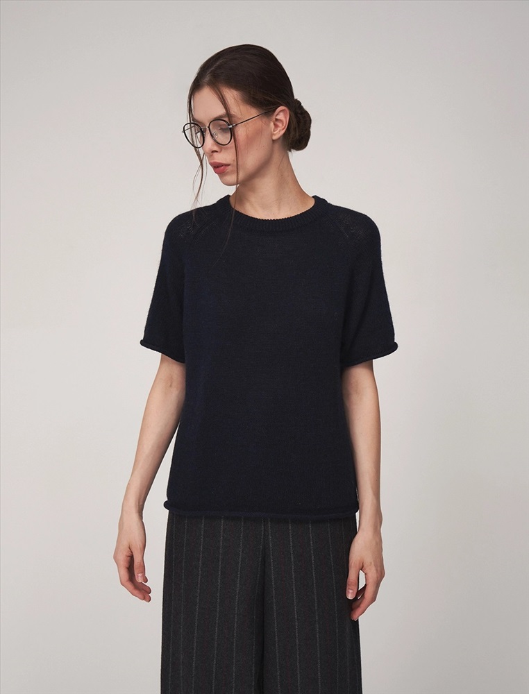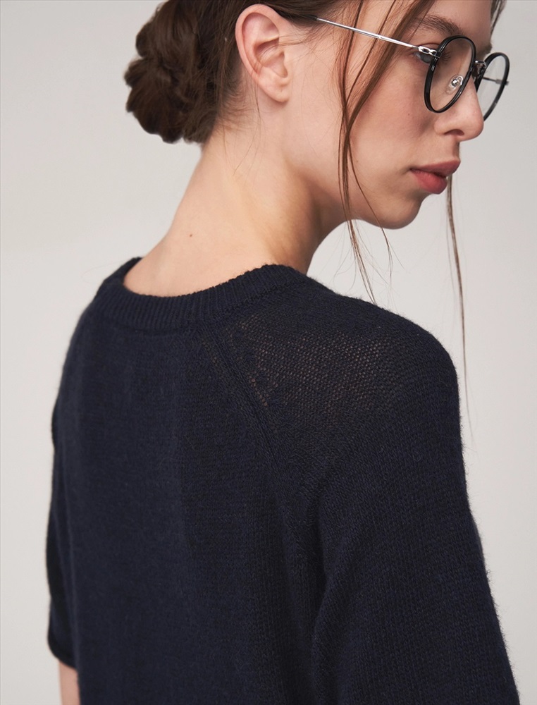 Вязаный джемпер регулярного силуэта с коротким рукавом по типу реглан. Горловина круглой формы. Края рукавов и низа имеют необработанный эффект. Выполнен из хлопка, акрила и кашемира, обеспечивающих тепло и мягкость. Представлен в трех базовых оттенках: бежевый, коричневый, синий.