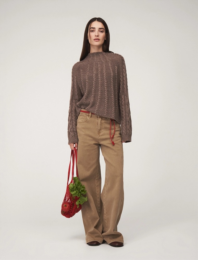 Видео: https-//hassfashion.ru/upload/iblock/6f0/4y3zkk2nbpzf9ov7lnz6tggowgzz3l05.mp4 осень-зима 55% Хлопок, 35% Акрил, 10% Кашемир Вязаный джемпер регулярного силуэта с воротником. Рукав по типу реглан. Акцентной деталью изделия являются вязаные косы. Выполнен из хлопка (55%), акрила и кашемира, что обеспечивает мягкость и тепло. Представлен в светло-коричневом оттенке.