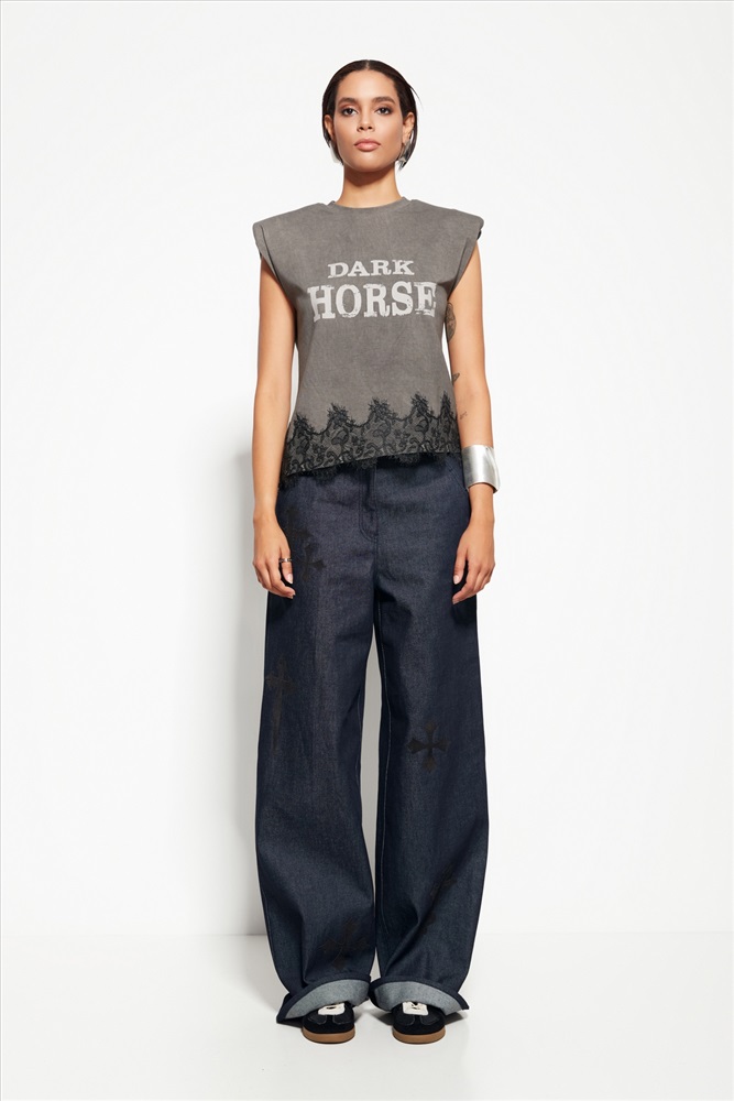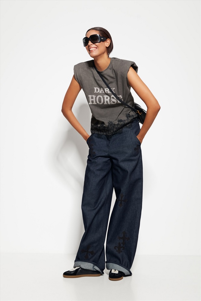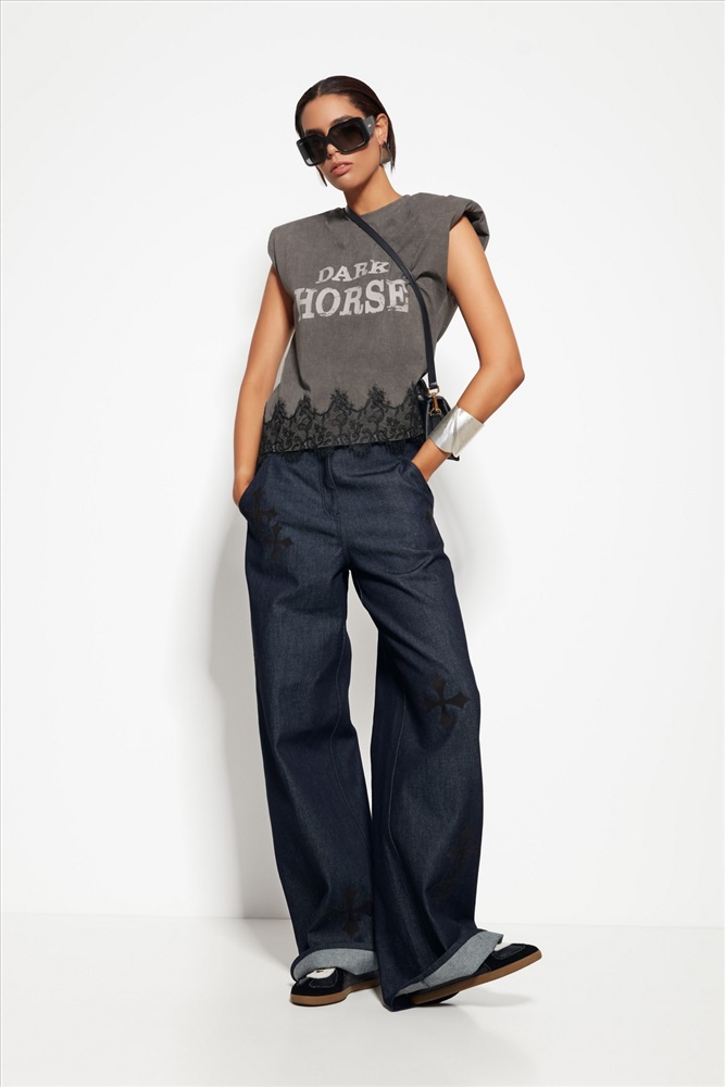 Джемпер Lakbi 55273 из коллекции Party 2026 — это стильная и женственная модель, которая привлекает внимание благодаря сочетанию подплечников, выразительному принту и кружевному декору по низу изделия. Эти элементы придают джемперу уникальность и изысканность, делая его идеальным выбором для вечерних мероприятий.