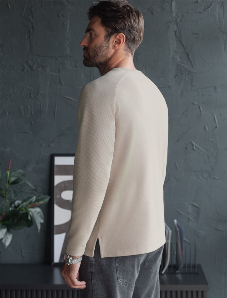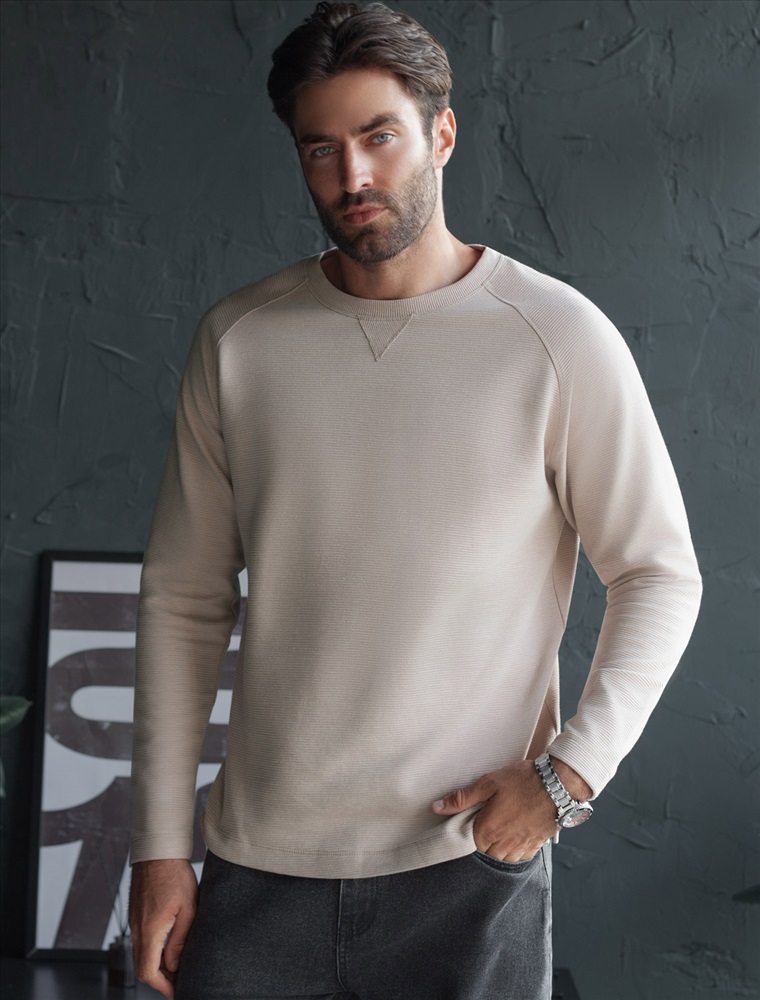 Базовый джемпер актуального светло-кофейного цвета с эффектом меланж выполнен из премиального хлопка с добавлением эластана, обеспечивает комфортный и уютный повседневный образ. Невероятно мягкая ткань из натуральных волокон - она едва ощутима на коже и словно обнимает тело. Материал при касании кажется бархатистым, при движении он словно повторяет все мельчайшие линии фигуры. По свойствам материал сочетает в себе практичность и нежность: отлично провускает воздух, сохраняя ощущение свежести в течение всего дня, при этом созраняет тепло в прохладную погоду.Идеально подходит для чувствительной кожи, не вызывает раздражения и дискомфорта. . Благодаря продуманному крою, свободный джемпер отлично сядет на мужчин и парней разных комплекций и размеров, подчеркнет достоинства фигуры и скроет возможные недостатки. Представлены большие размеры, включая 58.