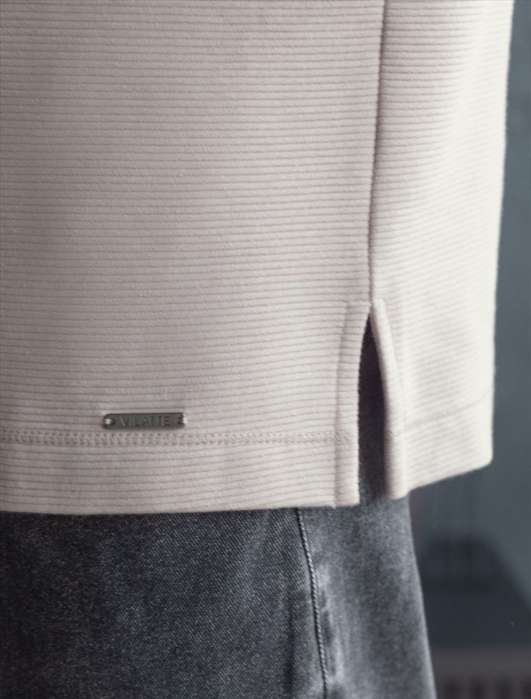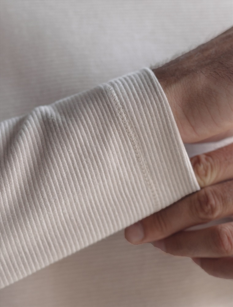 Цельнокроеные длинные рукава дополнены небольшими манжетами, по бокам аккуратные разрезы, которые придают стильный акцент, по краю металлическая нашивка с логотипом бренда. Ворот круглой формы удобно сидит на шее, не создавая дискомфорта.