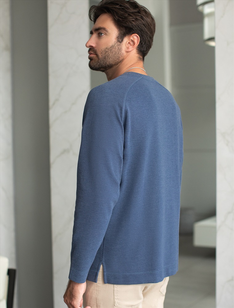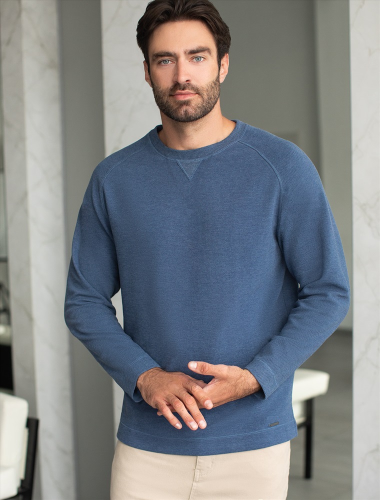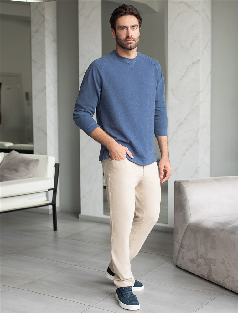 Базовый джемпер актуального синего цвета с эффектом меланж выполнен из премиального хлопка с добавлением эластана, обеспечивает комфортный и уютный повседневный образ. Невероятно мягкая ткань из натуральных волокон - она едва ощутима на коже и словно обнимает тело. Материал при касании кажется бархатистым, при движении он словно повторяет все мельчайшие линии фигуры. По свойствам материал сочетает в себе практичность и нежность: отлично провускает воздух, сохраняя ощущение свежести в течение всего дня, при этом созраняет тепло в прохладную погоду.Идеально подходит для чувствительной кожи, не вызывает раздражения и дискомфорта. Благодаря продуманному крою, свободный джемпер отлично сядет на мужчин и парней разных комплекций и размеров, подчеркнет достоинства фигуры и скроет возможные недостатки. Представлены большие размеры, включая 58.