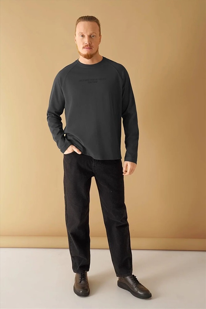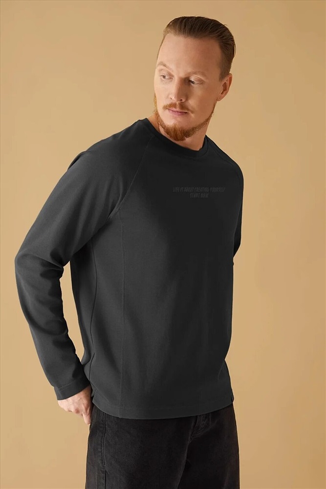 Страна производства: Россия Стильный мужской лонгслив из трикотажного полотна. Изделие с круглым вырезом горловины и длинным рукавом "реглан", в качестве отделки имиджевый принт и фурнитура. Отличный вариант на каждый день.