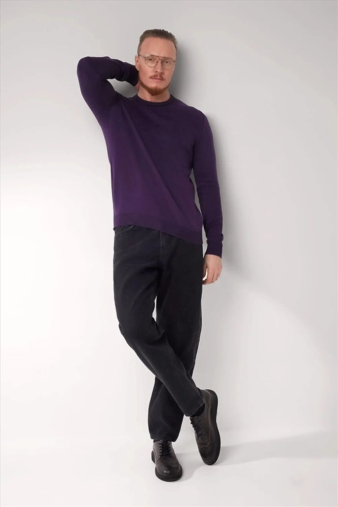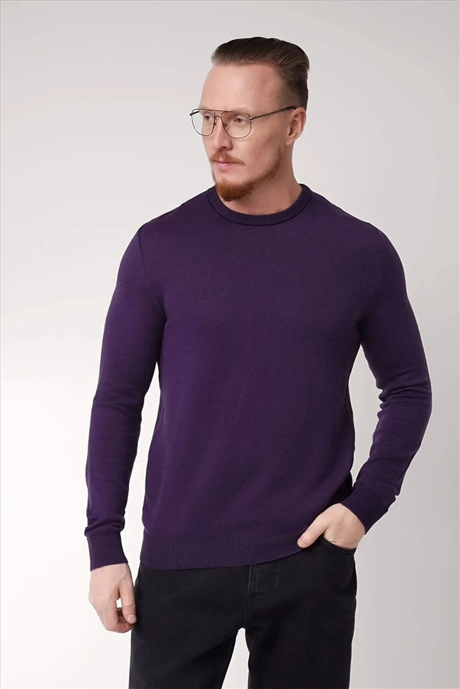 Классический вязаный джемпер с круглой горловиной. Изделие изготовлено из смесовой пряжи с содержанием хлопка. Данный джемпер удачно впишется в повседневный гардероб современного мужчины, привнося тепло, комфорт и элегантность одновременно.