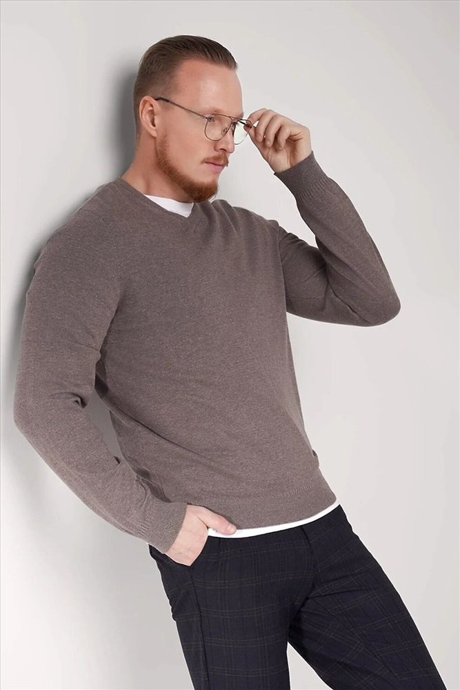 Джемпер мужской из смесовой хлопковой пряжи с длинным рукавом и с V- образной горловиной. Прекрасно сохраняет тепло, комфортный в носке. Отличное решение на холодное время года. Комбинируется с джинсами или брюками.