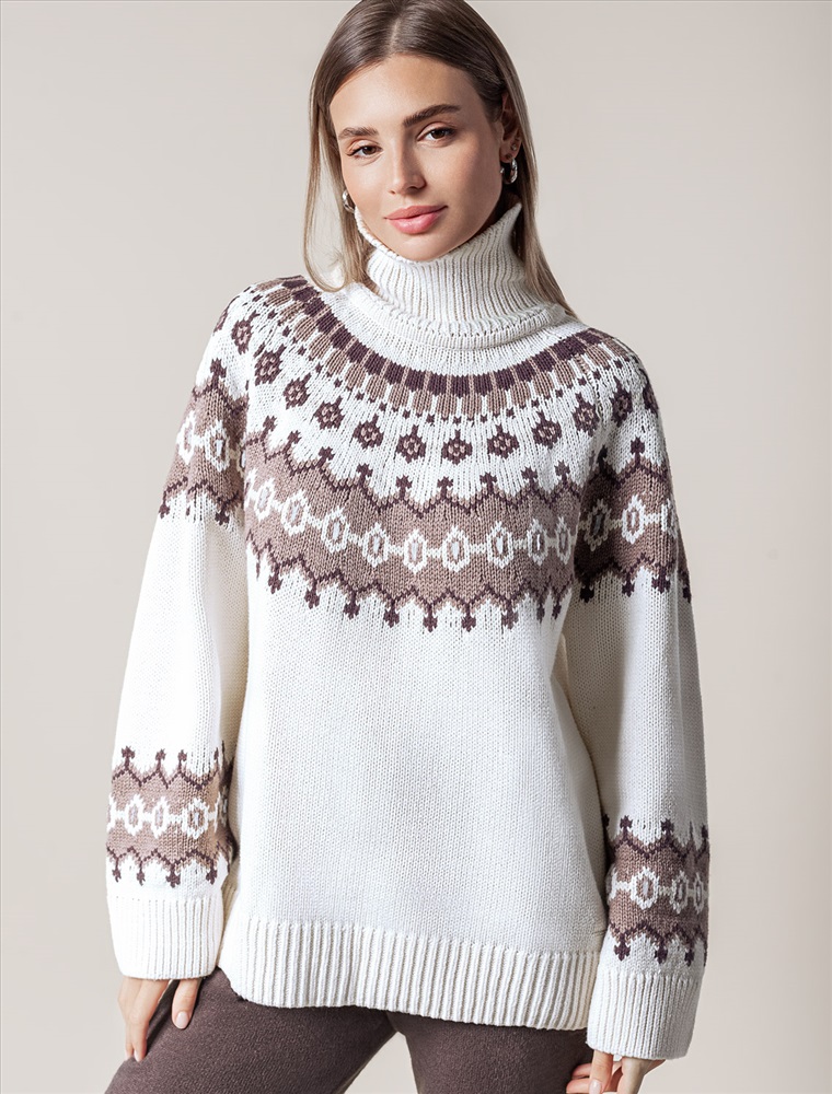 Параметры модели на первом фото: Рост 172, бюст 88, талия 64, бедра 88 Джемпер фактурной вязки выполнен из хлопковой пряжи с добавлением акрила. Уютная модель в скандинавском стиле внесет эстетику зимнего загородного отдыха в любой гардероб. Мягкая пряжа очень приятная к телу хорошо поддерживает тепло при этом не перегревая. Отлично держит форму даже после множества стирок. Свободный силуэт позволяет носить под низ футболки, лонгсливы и топы. Изделие дополнено металлическим логотипом бренда. Комментарии к товару