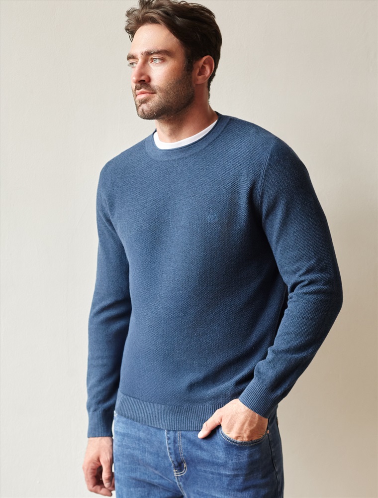 Состав: 82%Хлопок 18%ПА Джемпер фактурной вязки «оксфорд» выполнен из хлопковой пряжи с добавлением нейлона. Модель с круглым воротом дополнена вышитым логотипом бренда и классическим металлическим лого. Изделие гармонично впишется в образ как с брюками, так и с джинсами. Вторым слоем к контрастной футболке. Хлопковая пряжа хорошо сохраняет тепло при этом, не перегревая тело. Нейлон в составе способствует формоустойчивости.