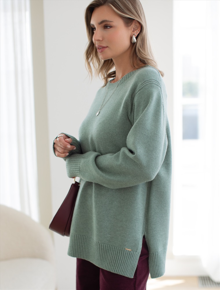 Размер товара на первом фото: 42 Джемпер с круглым воротом выполнен из мягкой меланжевой пряжи с кашемиром. Лаконичная модель свободного силуэта дополнена боковыми разрезами. Мягкая пряжа очень приятная к телу, поддержит комфорт на протяжении всего дня. Сочетается в костюме с брюками D38.013, D38.012 и юбкой D36.016 Комментарии к товару
