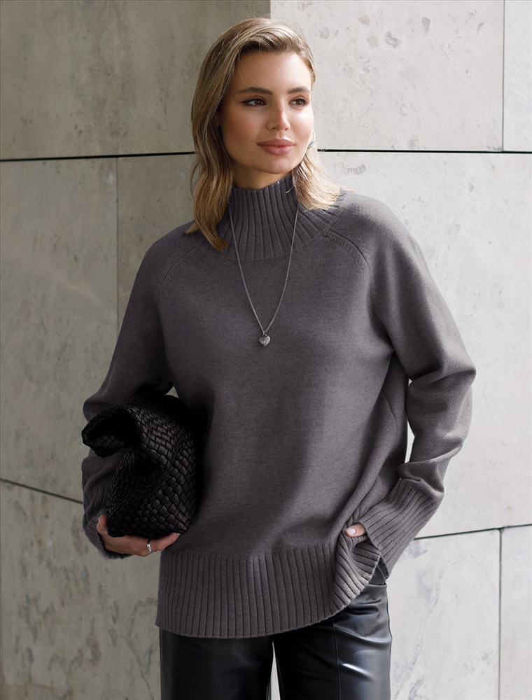 Размер товара на первом фото: 42 Джемпер с воротом стойка выполнен из мягкой меланжевой пряжи с кашемиром. Модель свободного силуэта с рукавом реглан будет стильно сочетается с брюками и джинсами. Мягкая пряжа очень приятная к телу, поддержит комфорт на протяжении всего дня, при этом не перегревая. Сочетается в костюме с брюками D38.013, D38.012 и юбкой D36.016
