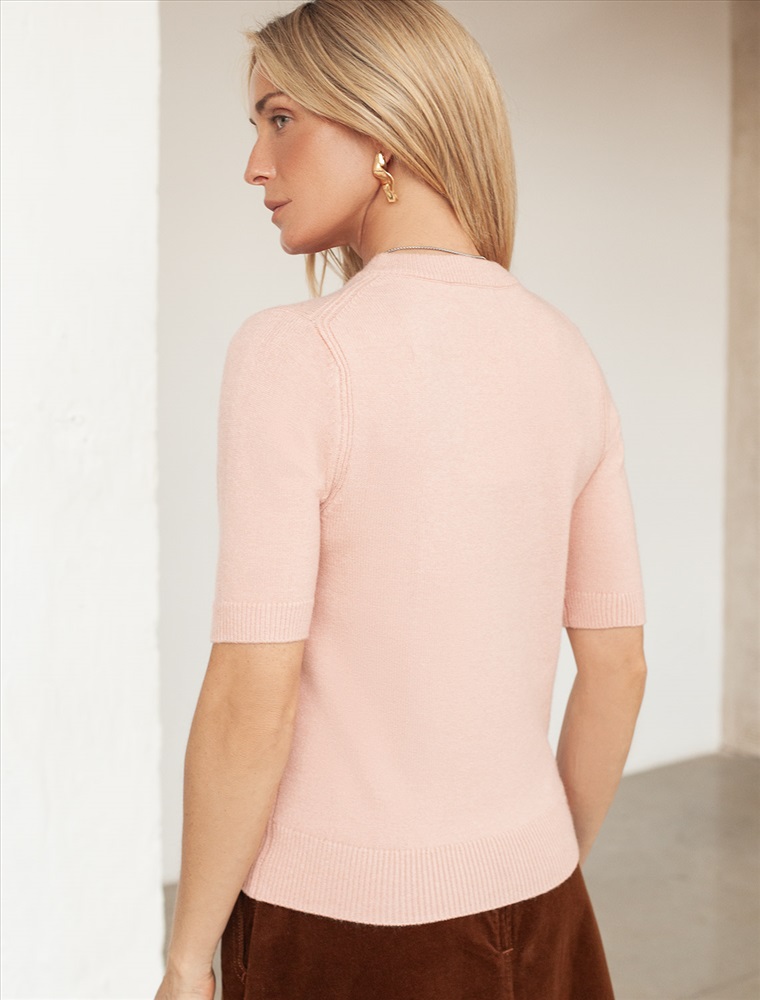 Размер товара на первом фото: 42 Джемпер с коротким рукавом выполнен из мягкой пряжи с кашемиром. Лаконичная модель с круглым воротом идеально сидит по фигуре. Благодаря своей универсальности подойдет для любого гардероба и в офисный дресс-код. Мягкая пряжа очень приятная к телу, поддержит комфорт на протяжении всего дня, при этом не перегревая. Сочетается в костюме с брюками D38.013, D38.012 и юбкой D36.016