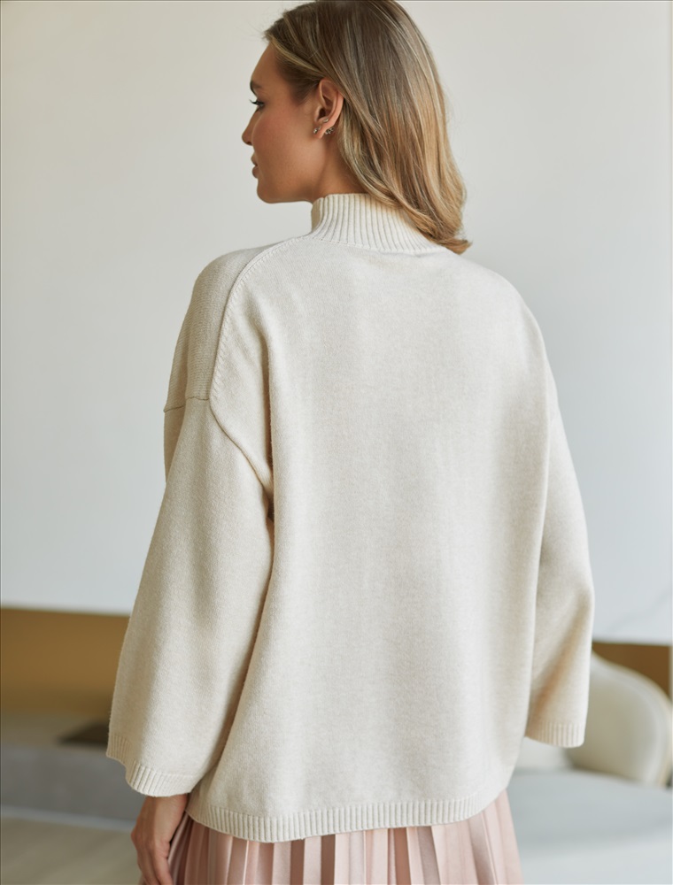 Размер товара на первом фото: 42 Джемпер выполнен из мягкой пряжи с кашемиром. Фишкой изделия являются свободные рукава на одном уровне с низом, это выгодно подчёркивает силуэт визуально вытягивая его. Мягкая пряжа очень приятная к телу, поддержит комфорт на протяжении всего дня, при этом не перегревая. Сочетается в костюме с брюками D38.013, D38.012 и юбкой D36.016