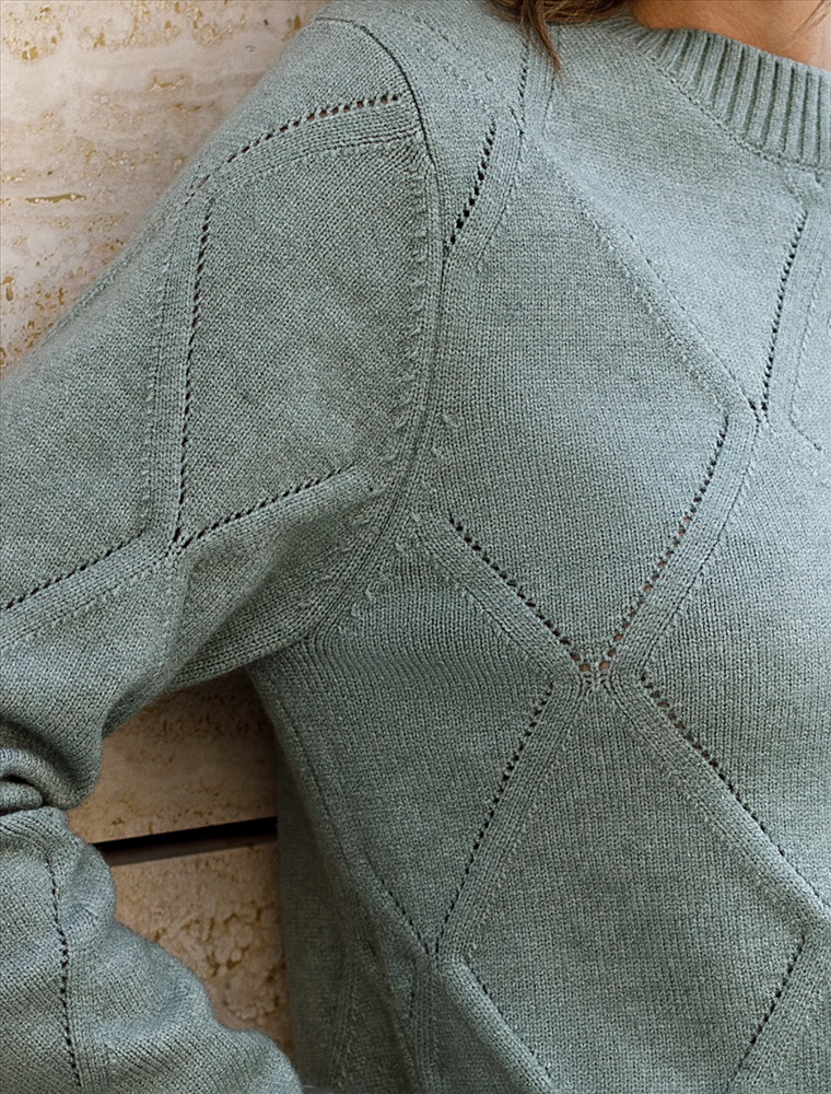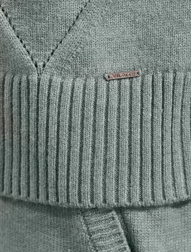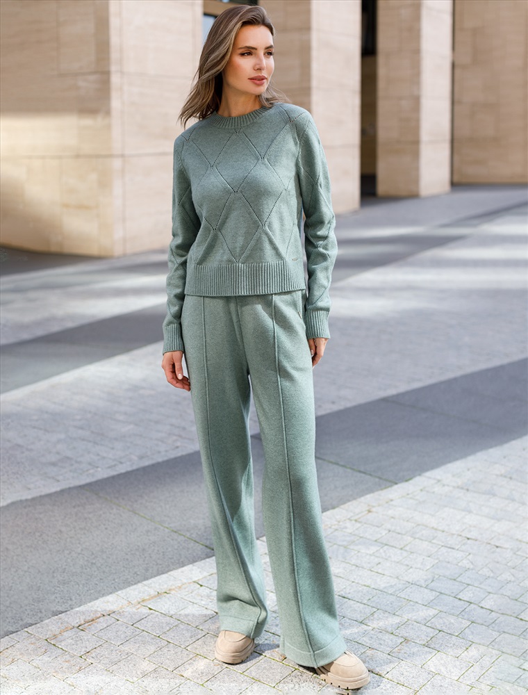 Размер товара на первом фото: 42 Невероятно женственный джемпер светло-оливкового цвета с круглым вырезом связан из высококачественной пряжи с кашемиром — идеальное сочетание мягкости и практичности. Пряжа с кашемиром придаёт ему бархатистую нежность и тонкую структуру, каждое прикосновение с которой, напоминает о тепле и уюте в прохладные дни. Благодаря нежной текстуре материала этот вариант отлично подходит даже для чувствительной кожи, не вызывая раздражения и дискомфорта в течение дня. Сдержанный, элегантный силуэт джемпера подчёркивает вкуc обладательницы, а филигранная отделка ворота — внимание к деталям. Фактурный графичный узор украшает джемпер, добавляя легкую нотку нарядности без лишней вычурности. Универсальный оттенок и изящная мягкость делают его идеальным выбором в любой ситуации. Широкие манжеты и нижний край добавляют аккуратности, а продуманная посадка делает повседневный джемпер удобным для многослойных образов — от офисного комплекта, например, в сочетании с блузкой, до расслабленного уикенда. Свободный крой джемпера идеально подходит для женщин, которые ценят удобство и стиль одновременно, а так же идеально подходит на большие размеры. Благодаря качественной пряже свитер сохраняет форму и внешний вид даже после многократных носок. Практичный фасон идеально подходит для работы в офисе или встреч с друзьями. Благодаря классическому крою джемпер гармонично сочетается практически с любыми элементами гардероба, помогая всегда выглядеть актуально. Сочетается в костюме с брюками D38.013, D38.012 и юбкой D36.016 Комментарии к товару