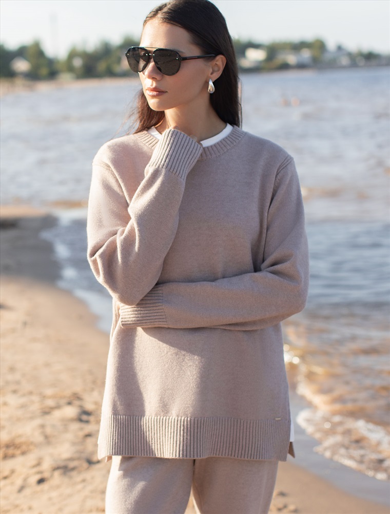 Размер товара на первом фото: 42 Джемпер с круглым воротом выполнен из мягкой меланжевой пряжи с кашемиром. Лаконичная модель свободного силуэта дополнена боковыми разрезами. Мягкая пряжа очень приятная к телу, поддержит комфорт на протяжении всего дня. Сочетается в костюме с брюками D38.013, D38.012 и юбкой D36.016 Комментарии к товару
