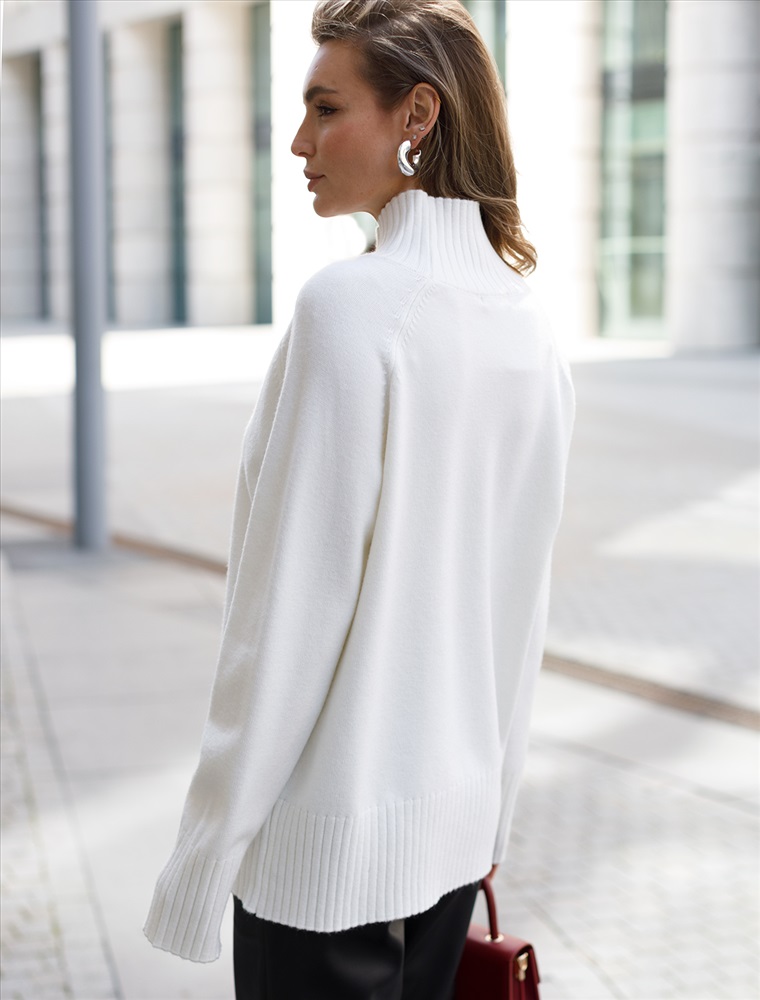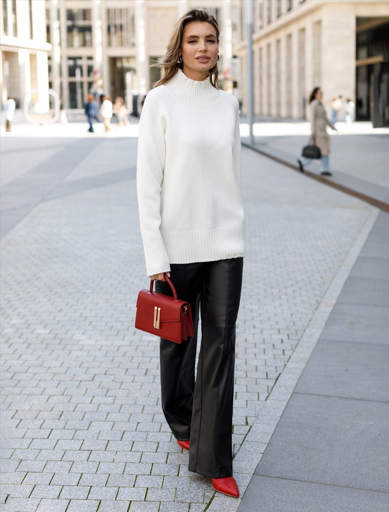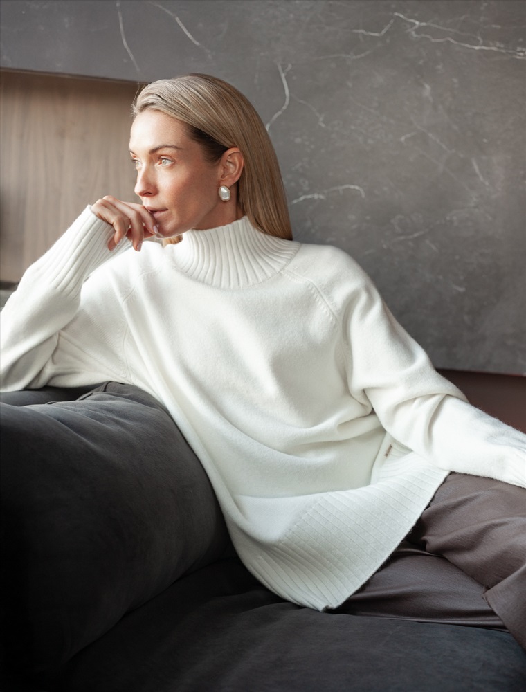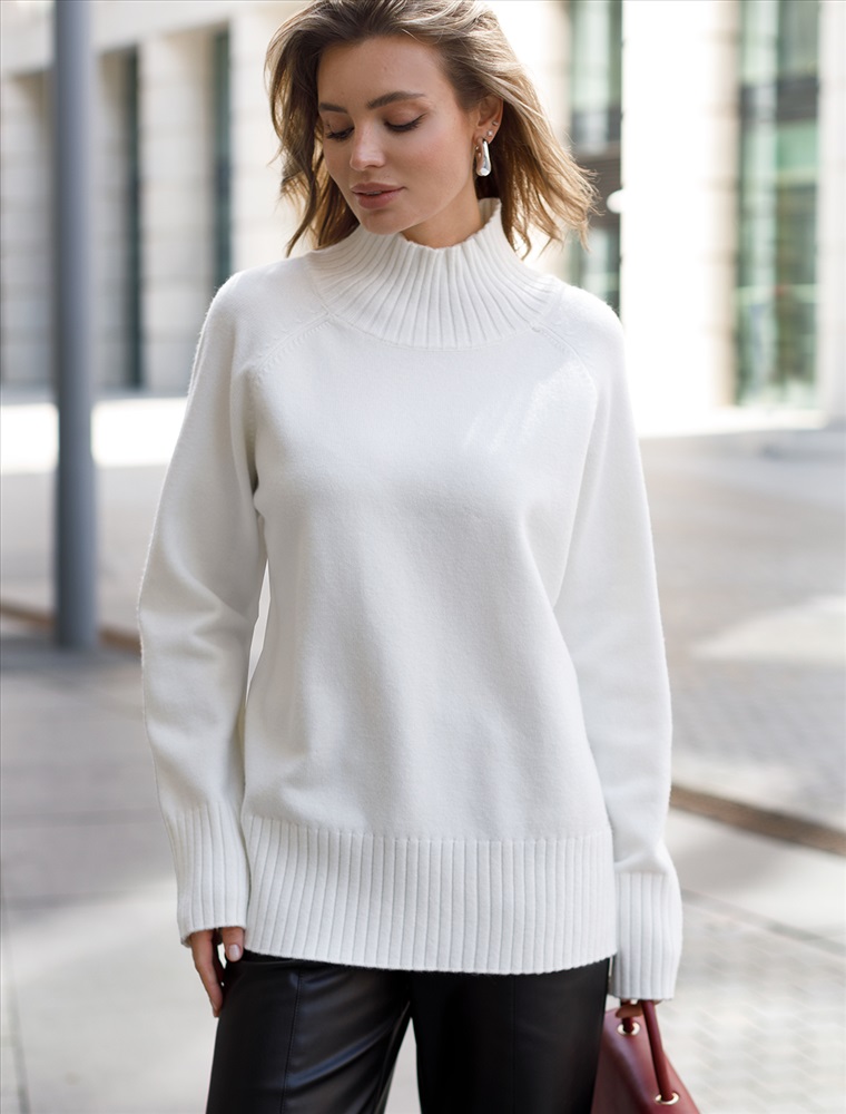 Размер товара на первом фото: 42 Джемпер с воротом стойка выполнен из мягкой пряжи с кашемиром. Модель свободного силуэта с рукавом реглан будет стильно сочетается с брюками и джинсами. Мягкая пряжа очень приятная к телу, поддержит комфорт на протяжении всего дня, при этом не перегревая. Сочетается в костюме с брюками D38.013, D38.012 и юбкой D36.016