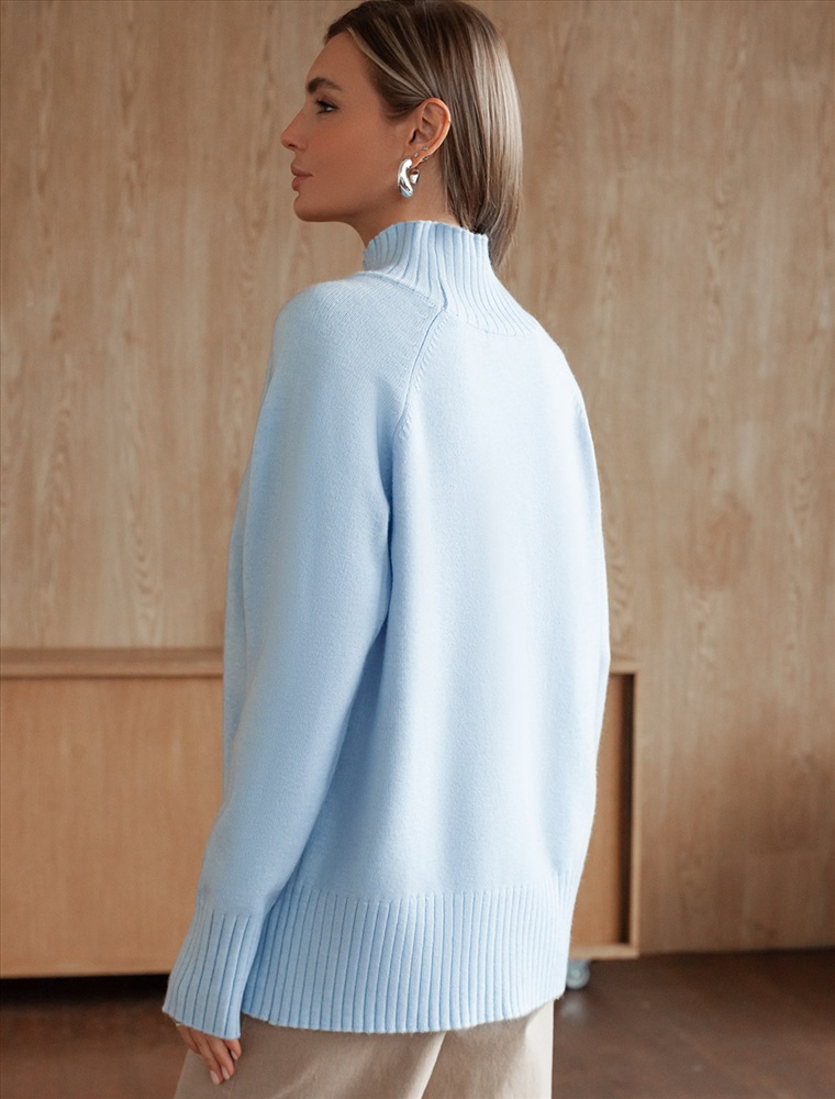 Размер товара на первом фото: 42 Джемпер с воротом стойка выполнен из мягкой меланжевой пряжи с кашемиром. Модель свободного силуэта с рукавом реглан будет стильно сочетается с брюками и джинсами. Мягкая пряжа очень приятная к телу, поддержит комфорт на протяжении всего дня, при этом не перегревая. Сочетается в костюме с брюками D38.013, D38.012 и юбкой D36.016