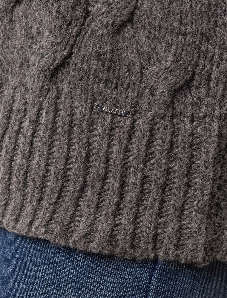 Параметры модели на первом фото: Рост 172, бюст 88, талия 64, бедра 88 Джемпер в кофейном оттенке выполнен из уютной меланжевой пряжи крупной вязки с ангорой и легким пушистым мохером. Модель с фактурным узором косы очень приятная на ощупь, в которую хочется укутаться. Отлично согревает, а свободный силуэт позволяет носить изделие на футболку или рубашку. Из украшений металлический логотип бренда. Комментарии к товару