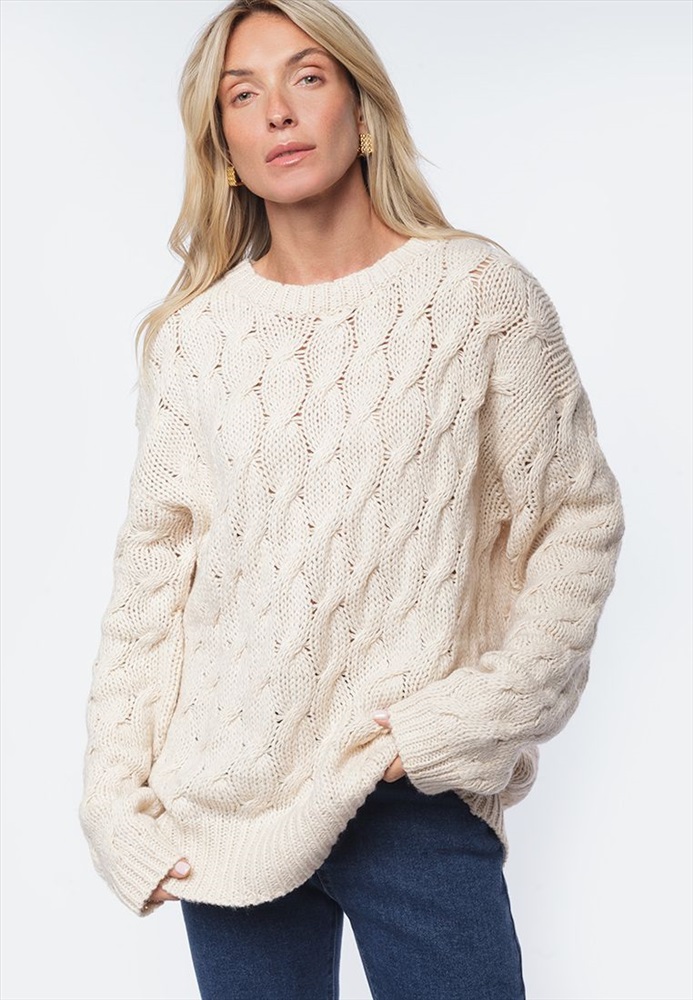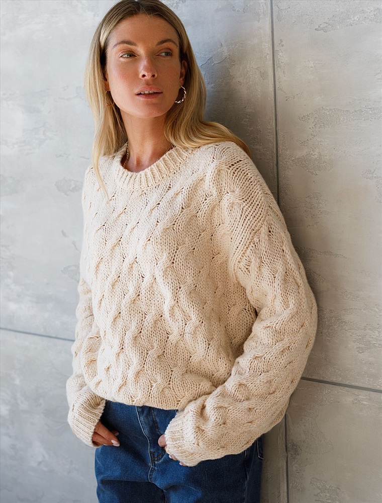 Параметры модели на первом фото: Рост 172, бюст 88, талия 64, бедра 88 Джемпер в овсяном оттенке выполнен из уютной пряжи крупной вязки с ангорой и легким пушистым мохером. Модель с фактурным узором косы очень приятная на ощупь, в которую хочется укутаться. Отлично согревает, а свободный силуэт позволяет носить изделие на футболку или рубашку. Из украшений металлический логотип бренда. Комментарии к товару