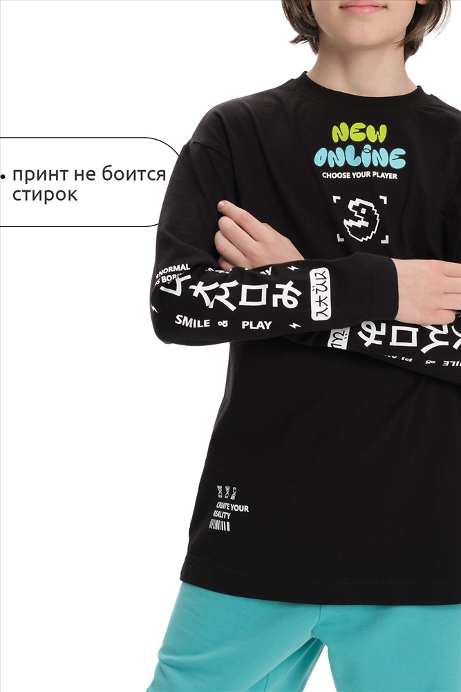 ID товара: 1104407 Состав: 100% Хлопок Сезон: Демисезон Длина: Средняя Фасон: Прямой Рукав: длинные Вырез горловины: Округлый Рисунок: Надпись Декоративные элементы: Принт Основная ткань: Хлопок Стиль: повседневный Страна бренда: Россия Страна производства: Китай Лонгслив для мальчика. Джемпер свободного силуэта со спущенным плечом. Футболка с длинным рукавом выполнена в стиле Digital. Горловина обработана эластичной рибаной - голова не застрянет. Водолазка без горловины украшена молодежным ретро-принтом Pac-man (пакмен), который немпременно оценят юные геймеры. Кроме принта по переду изделия есть надписи, перевод надписей: "new online" - новый онлайн, "choose your player" - выбери своего игрока, "create your reality" - создавай свою реальность. Рукава также украшены принтом-надписью в японском стиле, он эластичный и прочный, без проблем переносит частые стирки. Перевод надписей на рукавах: "камон, normal is boring" - камон, нормальное это скучно, "smile and play" - улыбайся и играй. Тонкая кофта в стиле аниме подойдет для малышей и подростков. Прекрасный выбор для детского сада, спортивных тренировок, для отдыха дома. Изделие можно носить весной, летом, осень и зимой. Комментарии к товару