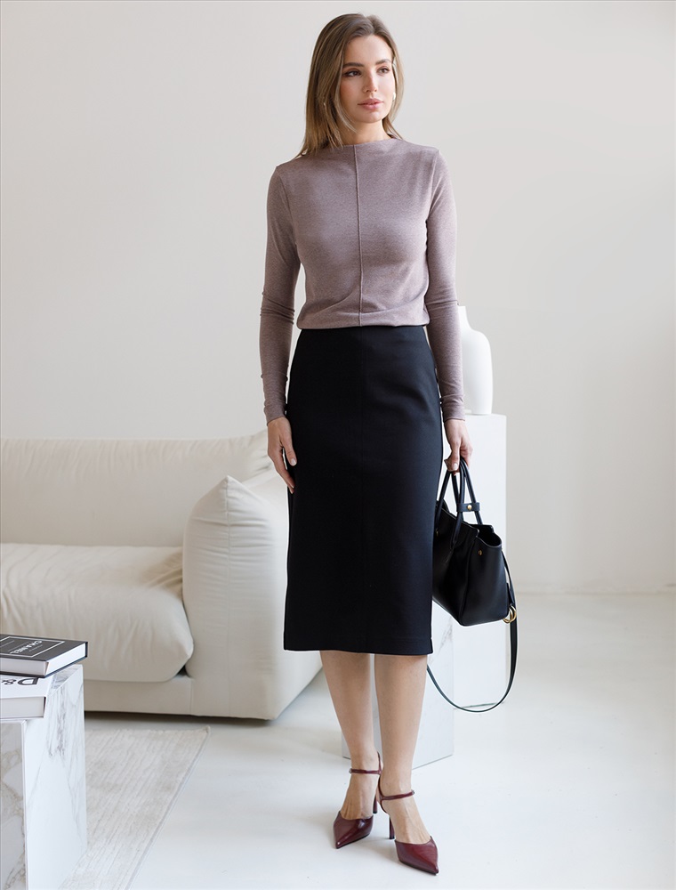 Джемпер прямого силуэта с цельнокроеным воротом выполнен из премиального хлопка. Наличие эластана в составе гарантирует комфорт и формоустойчивостиь изделия. Вертикальный декоративный шов спереди, визуально вытягивает силуэт. Базовая модель хорошо впишется в любой гардероб и подойдет для офисного дресс-кода. К изделию пришит металлический логотип бренда.
