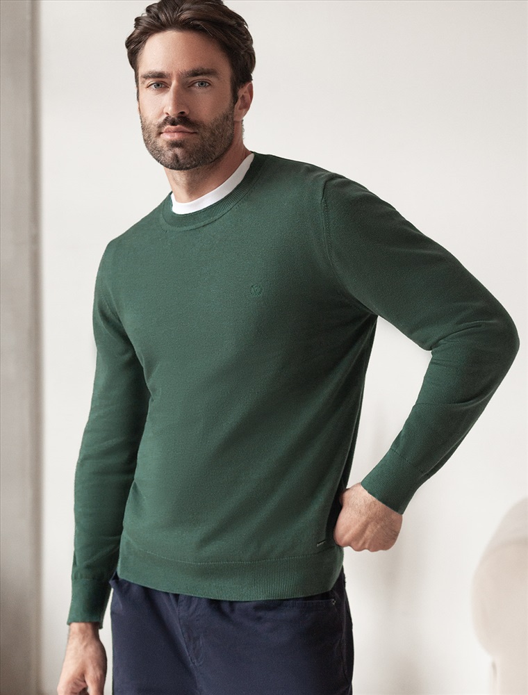 Джемпер выполнен из премиальной гладкой хлопковой пряжи с добавлением нейлона. Лаконичная модель с круглым воротом дополнена вышитым логотипом бренда и классическим металлическим лого. Изделие гармонично впишется в образ как с брюками, так и с джинсами. Хлопковая пряжа хорошо сохраняет тепло при этом, не перегревая тело. Нейлон в составе способствует формоустойчивости.