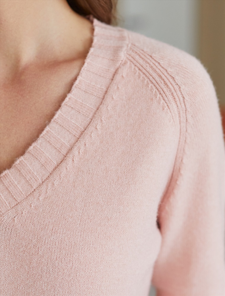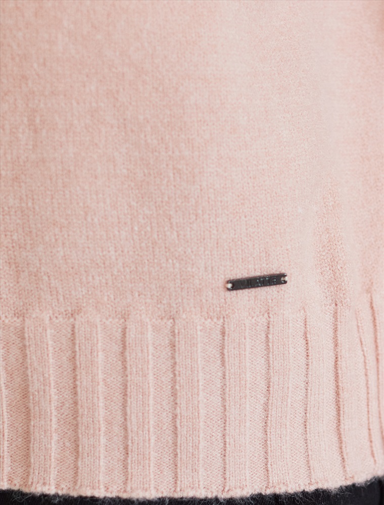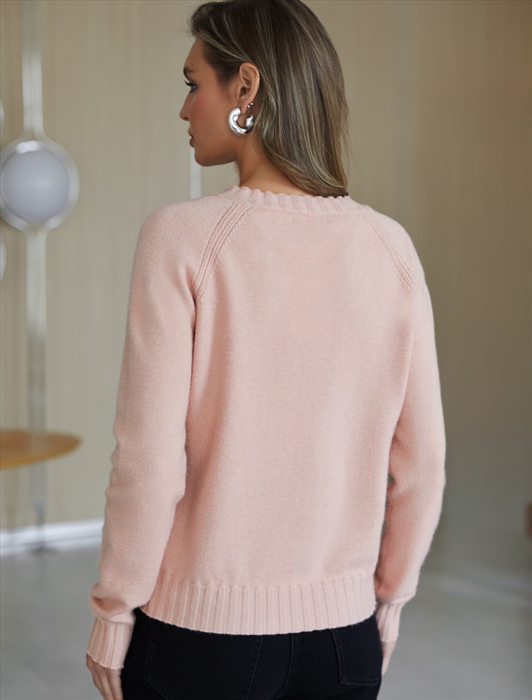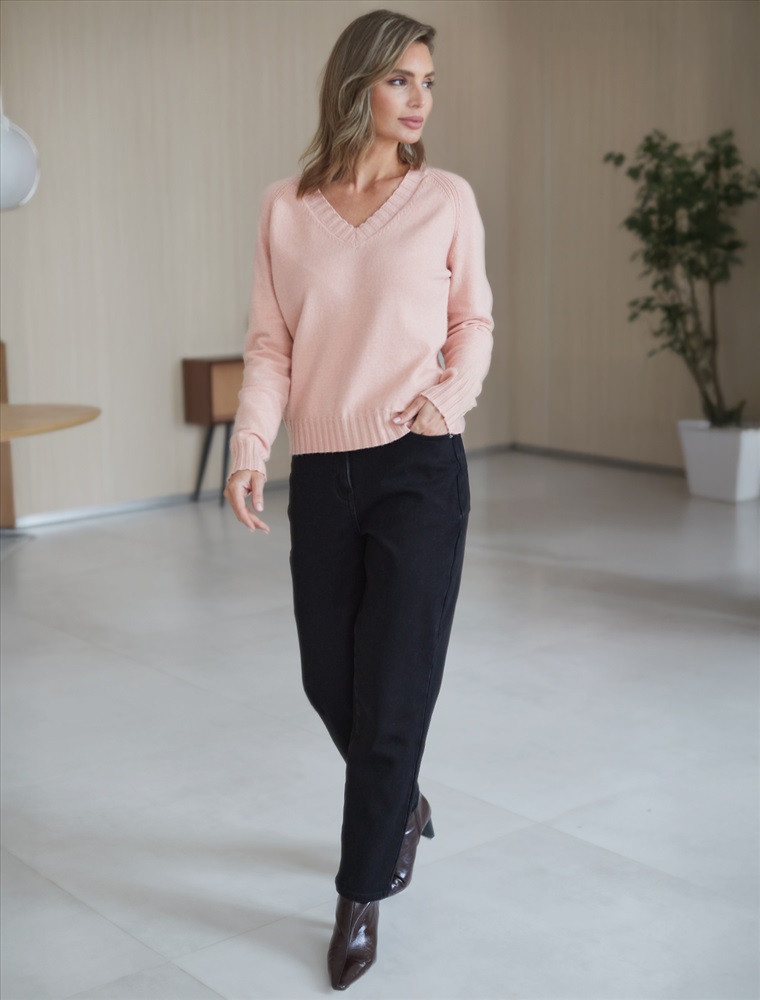 Невероятно женственный джемпер пудрового цвета с V вырезом связан из высококачественной пряжи с кашемиром — идеальное сочетание мягкости и практичности. Пряжа с кашемиром придаёт ему бархатистую нежность и тонкую структуру, каждое прикосновение с которой, напоминает о тепле и уюте в прохладные дни. Благодаря нежной текстуре материала этот вариант отлично подходит даже для чувствительной кожи, не вызывая раздражения и дискомфорта в течение дня. Сдержанный, элегантный силуэт джемпера подчёркивает вкуc обладательницы, а филигранная отделка ворота — внимание к деталям. Универсальный оттенок и изящная мягкость делают его идеальным выбором в любой ситуации. Широкие манжеты и нижний край добавляют аккуратности, а продуманная посадка делает повседневный джемпер удобным для многослойных образов — от офисного комплекта, например, в сочетании с блузкой, до расслабленного уикенда. Свободный крой джемпера идеально подходит для женщин, которые ценят удобство и стиль одновременно, а так же идеально подходит на большие размеры. Благодаря качественной пряже свитер сохраняет форму и внешний вид даже после многократных носок. Практичный фасон идеально подходит для работы в офисе или встреч с друзьями. Благодаря классическому крою джемпер гармонично сочетается практически с любыми элементами гардероба, помогая всегда выглядеть актуально. Сочетается в костюме с брюками D38.013, D38.012 и юбкой D36.016