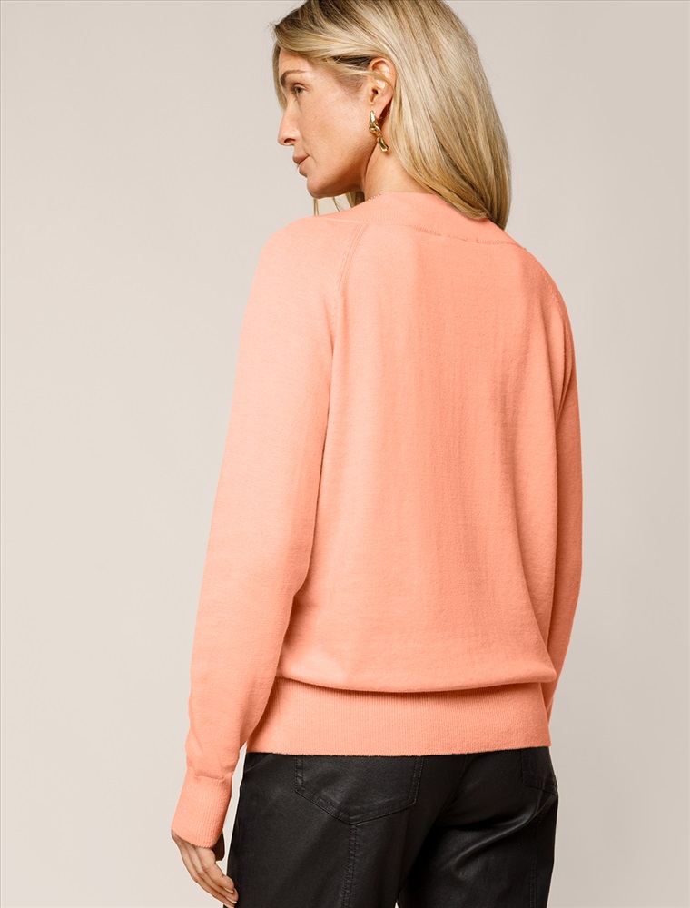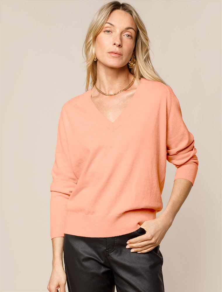 Размер товара на первом фото: 42 Джемпер тонкой вязки выполнен из хлопка с добавлением кашемира. Модель с V-вырезом свободного силуэта. Мягкая и очень приятная пряжа в рубчик совершенно не колется, сохраняет тепло при этом не перегревая, гарантируя безупречный комфорт.